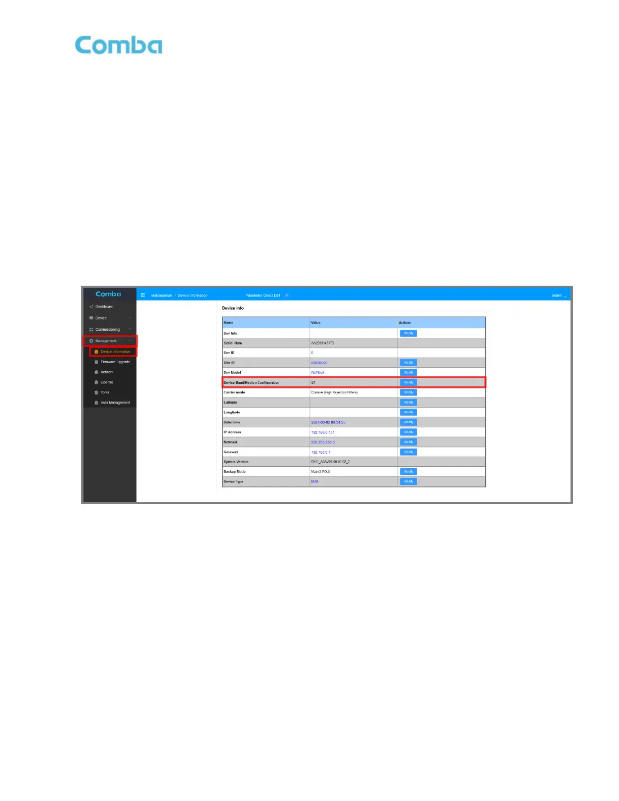 • Login to the device web GUI and change the <Device Band/Region Configuration> according to the