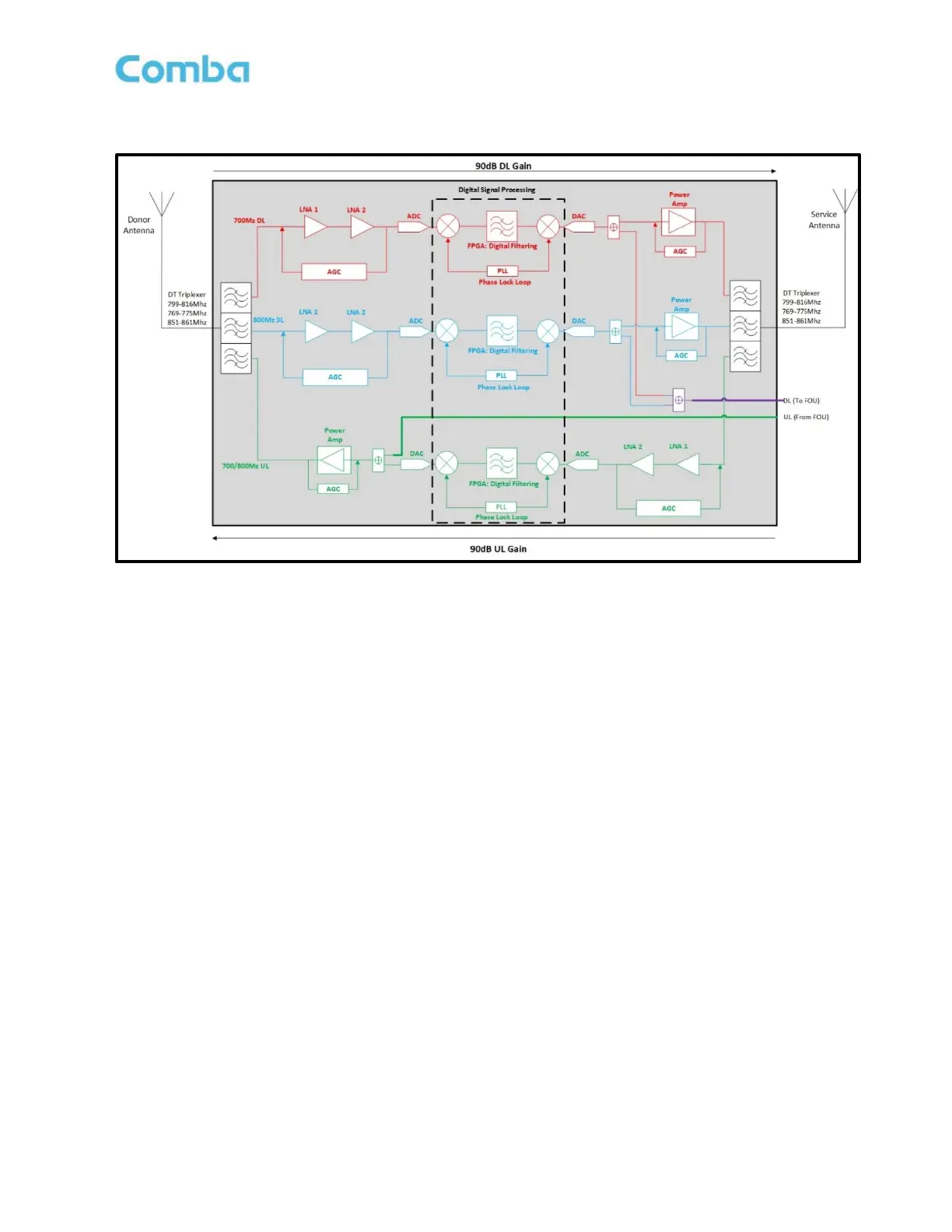 Note: The above block diagram shows the 700MHz DL path in red, the 800MHz DL path in Blue, the
