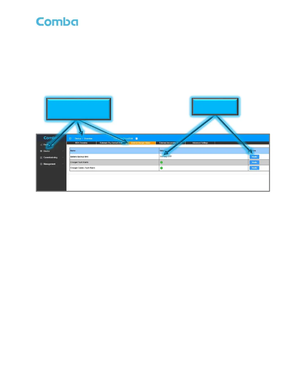 • Login to the device GUI, navigate to the <Device – Overview – Internal Charger Status/BBU –