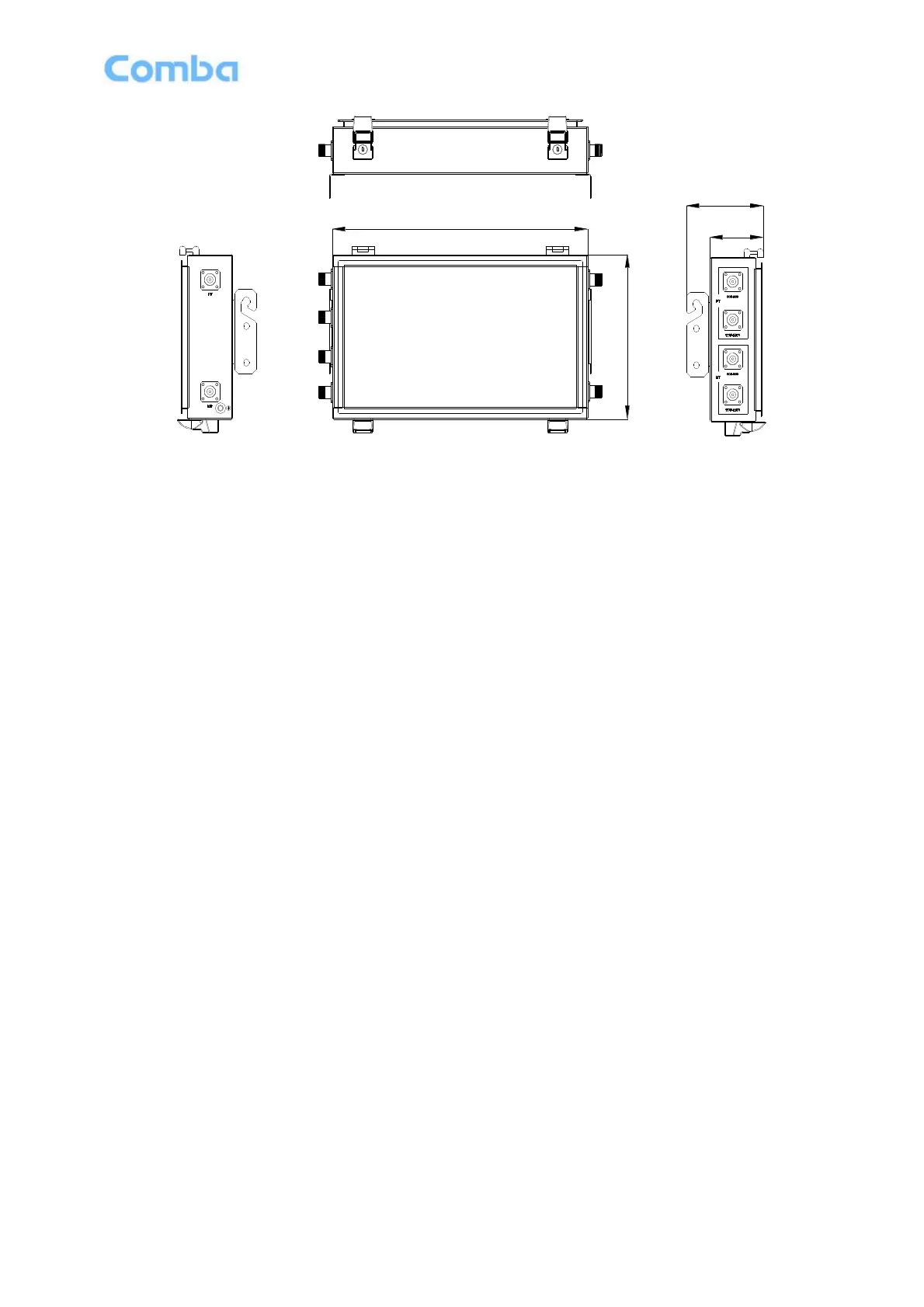 Figure 2: Front, Side and Bottom Views of the dual-band combiner Enclosure