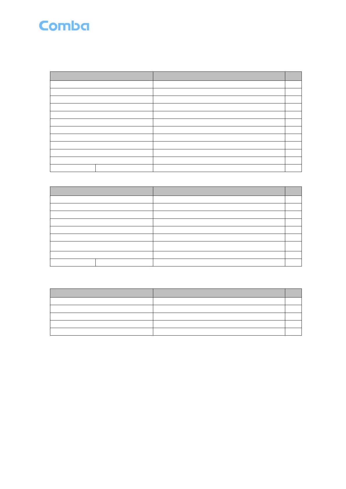 Table 3: Equipment KOP of Combiner unit
