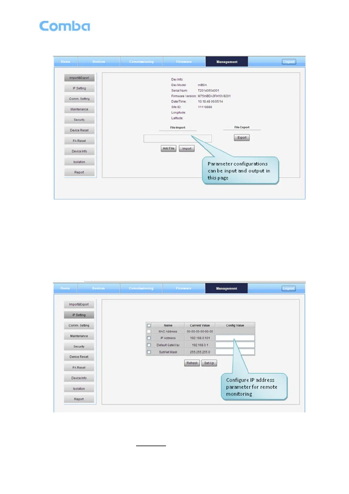 configuration, users can export its parameters and save as a file in PC, and then import this file to other