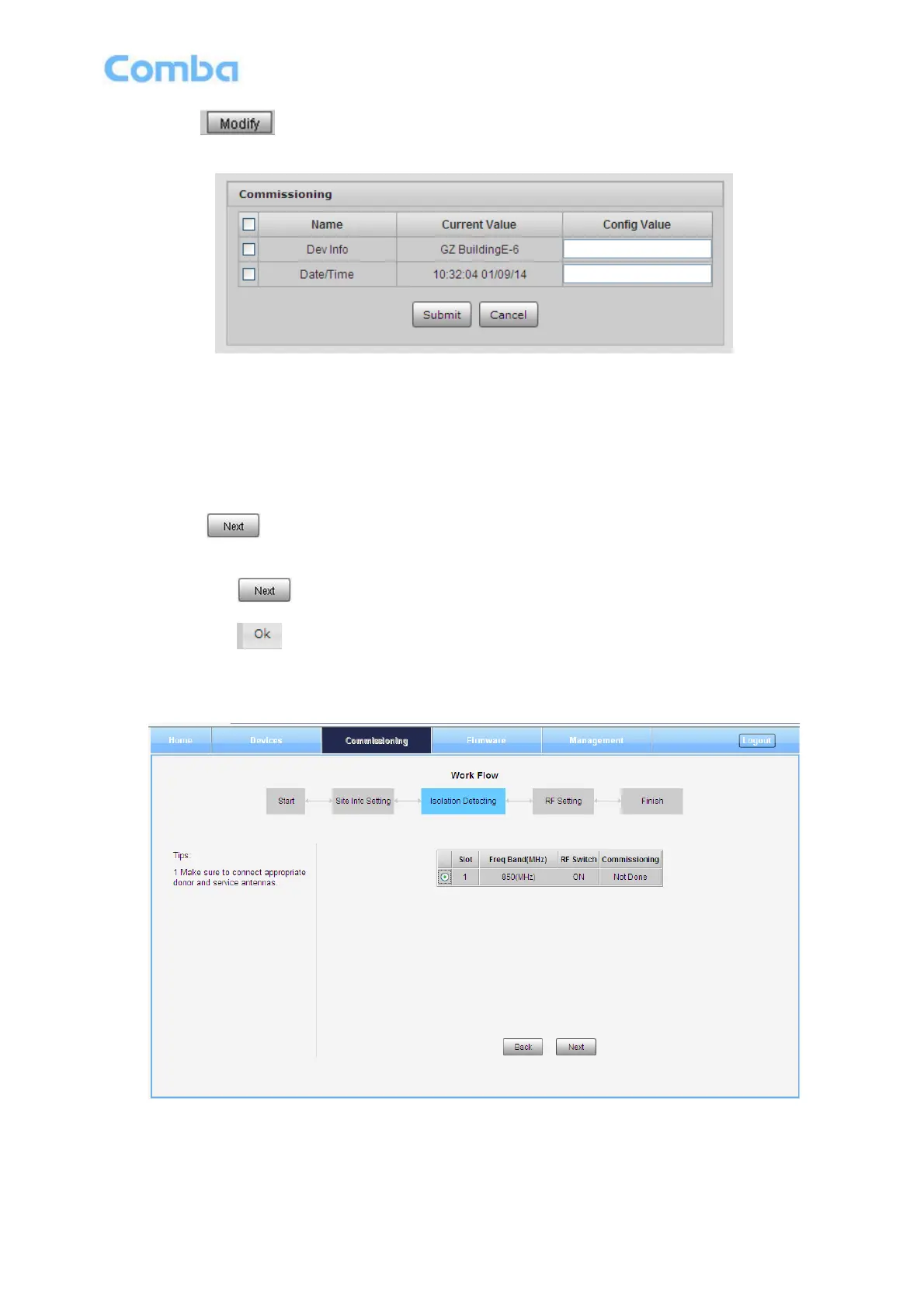 NOTE: At the end of first frequency band commissioning, user can start other frequency band commission.