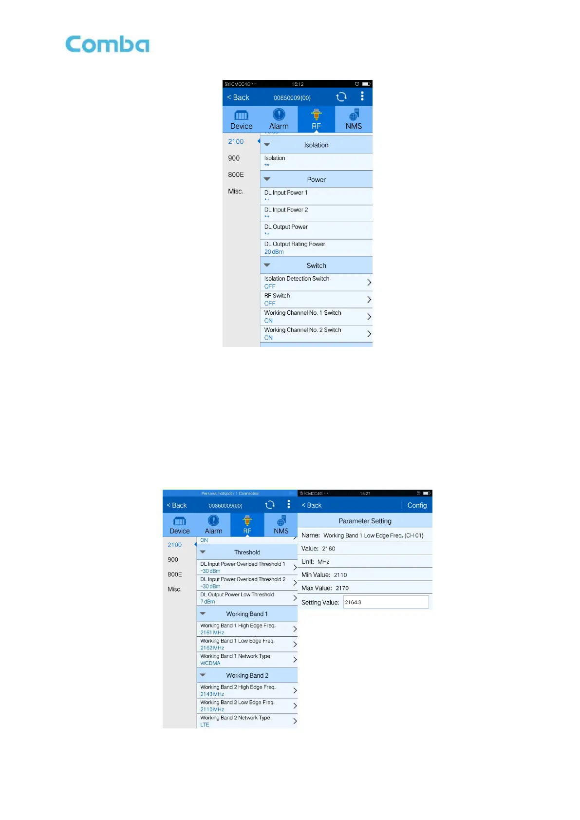 Frequency is working band bandwidth setting. The value in [Max Value] column is the upper limit of the