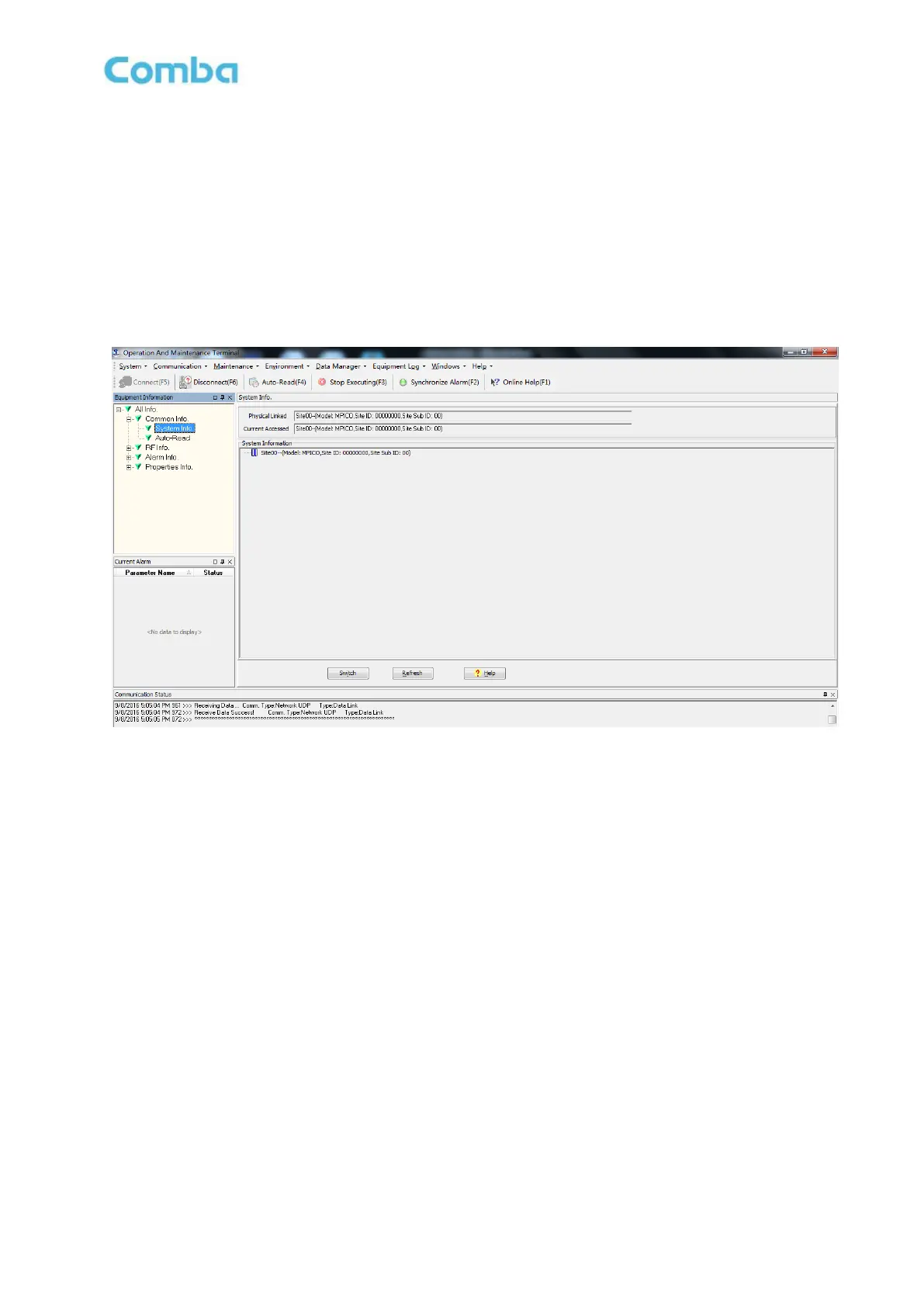 parameters, such as checking physical antenna connection, switching off will disable equipment power