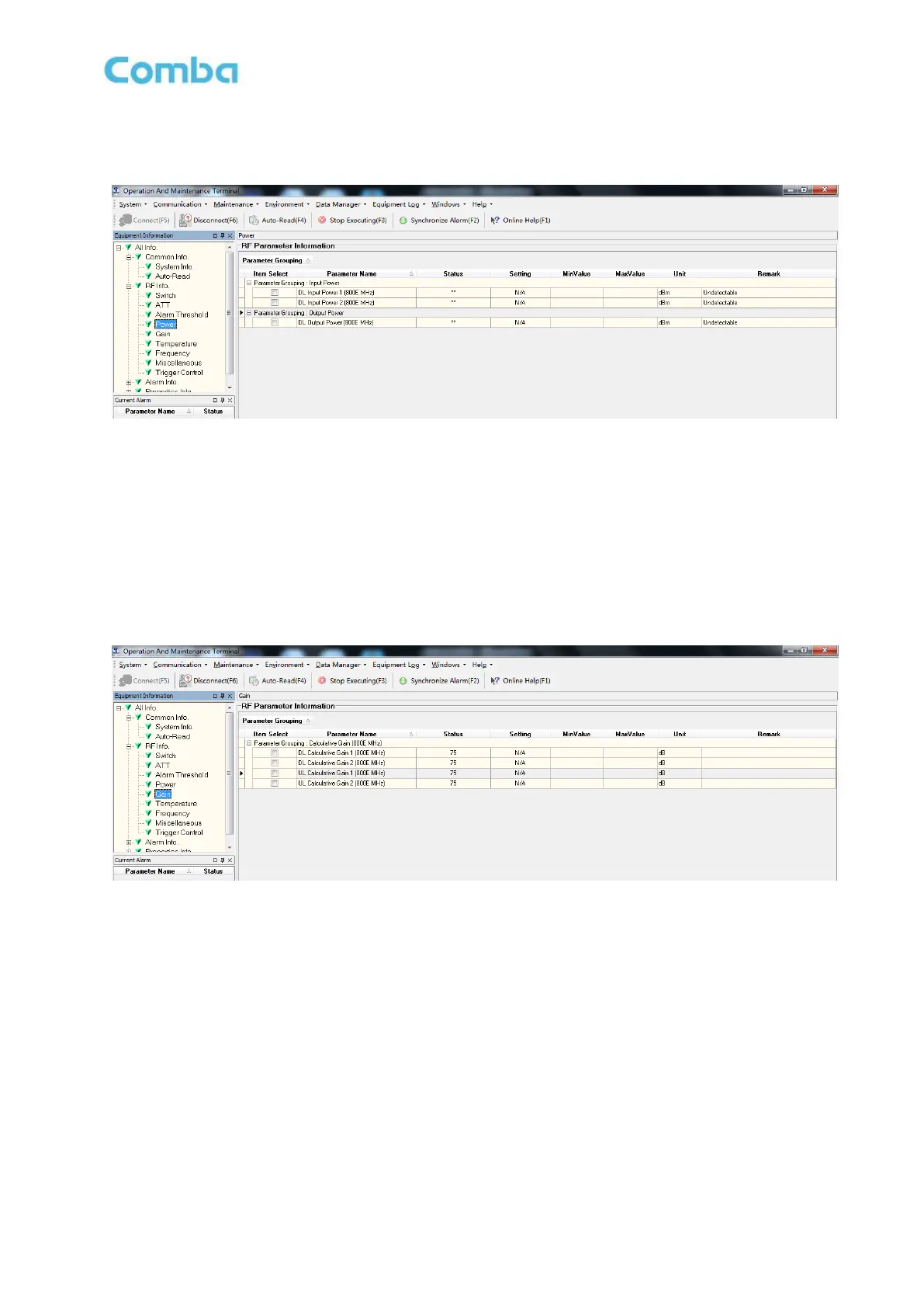 Gain is referring to the reading of downlink and uplink calculative gain.