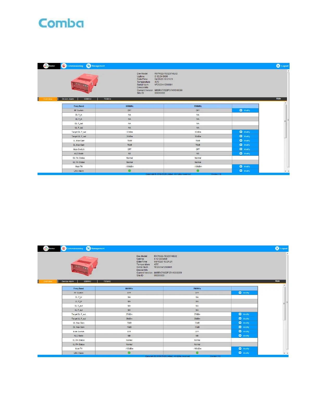 On Comba Web GUI Home Screen, there are three Menu bars: