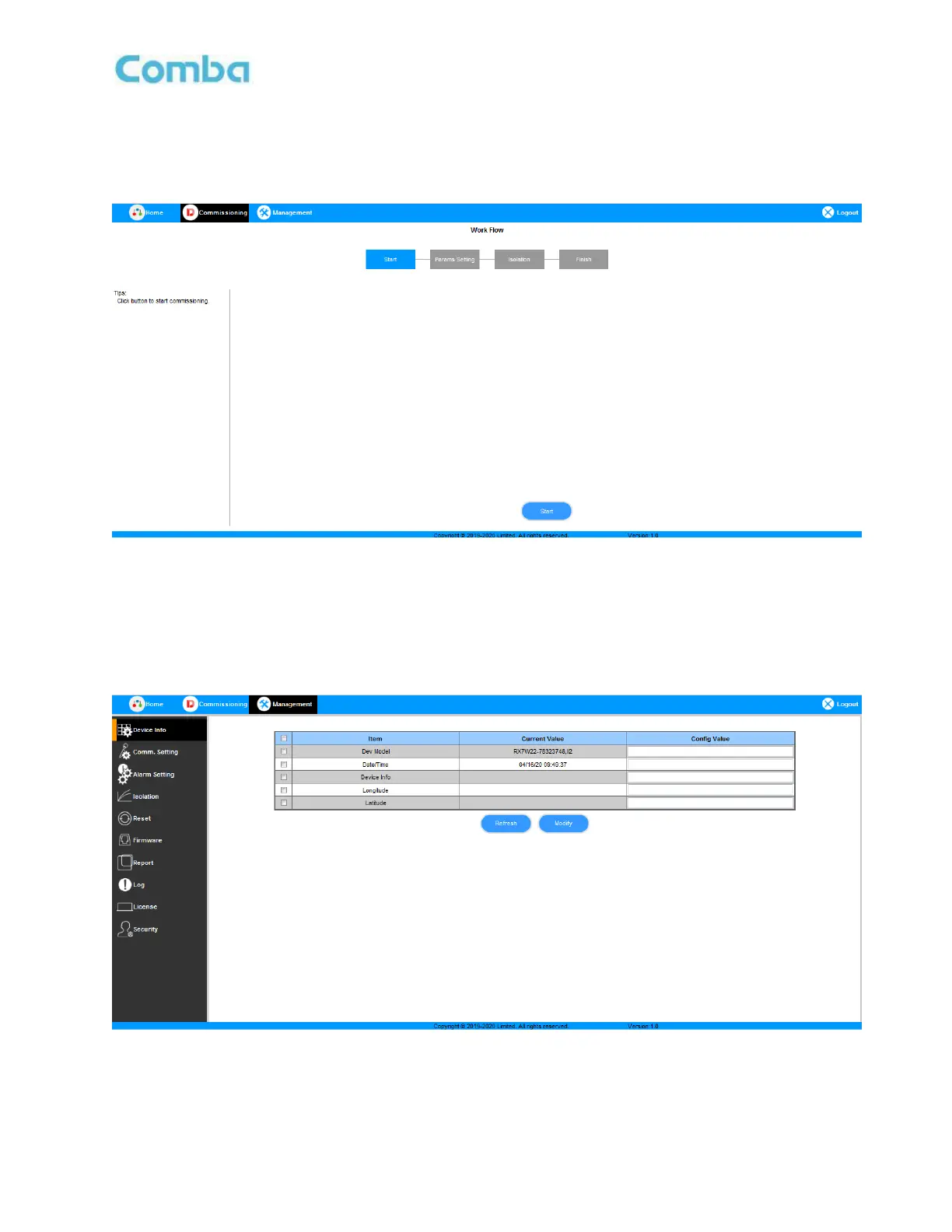 Other parameters can be configured on the [Management] Screen. It includes Device Info, Comm. Setting,