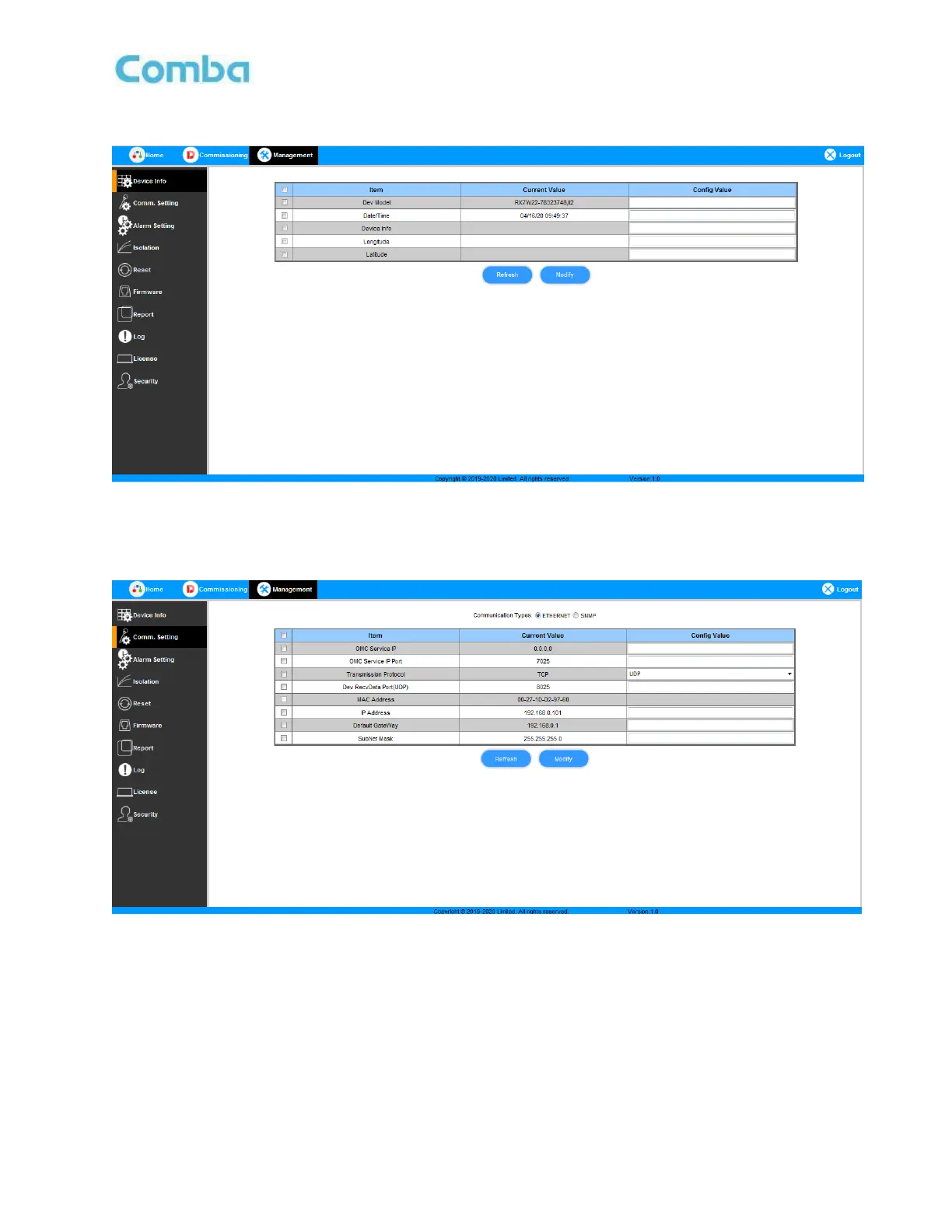 Figure 18: Management Comm. Setting