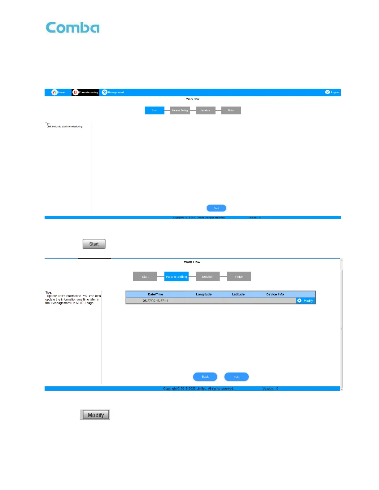 Figure 29: Commissioning Procedure – Site Info. Setting