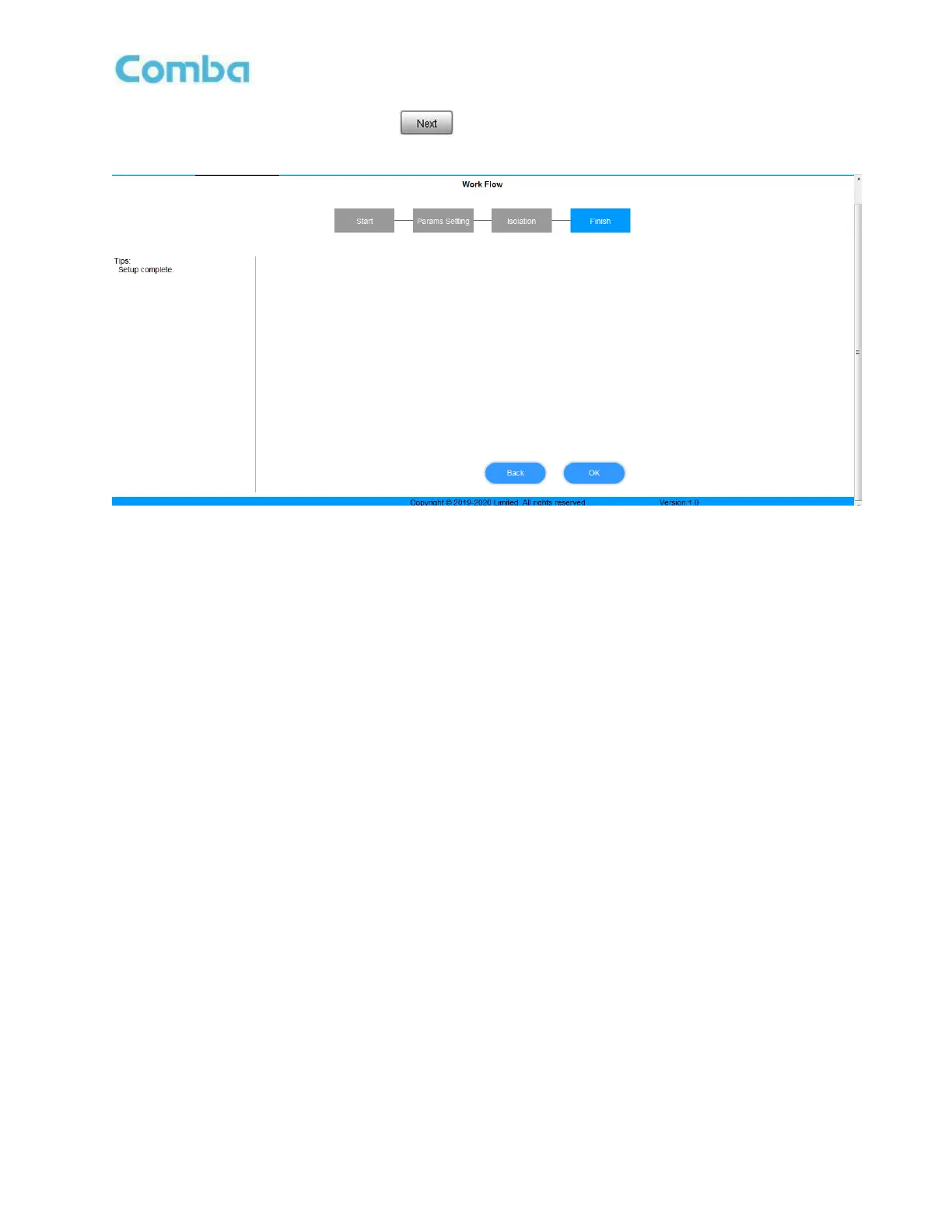 Step 5: After checking the isolation, Click to finish the commissioning. In this window, a summary of