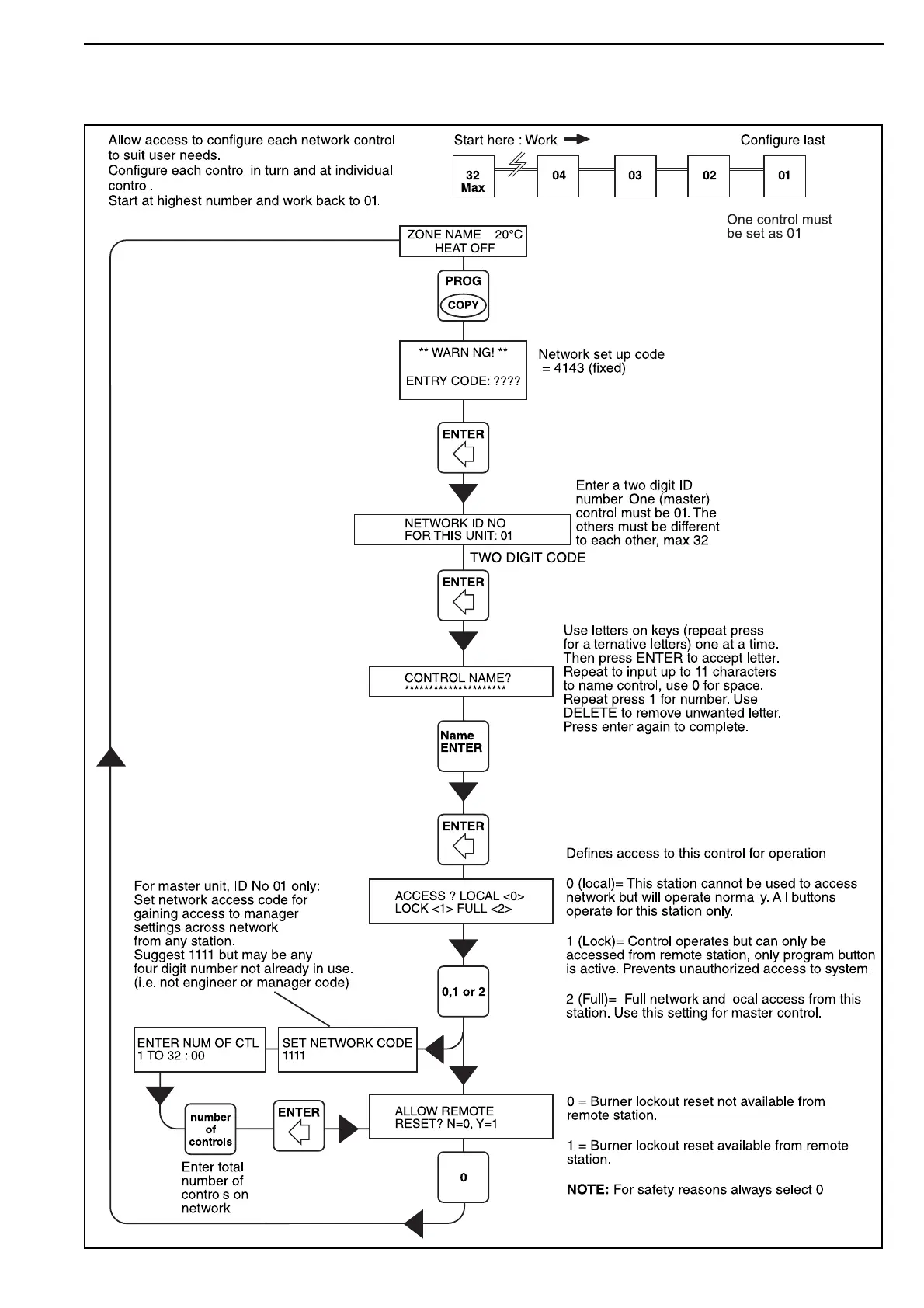 All engineer settings must be carried out at individual control.