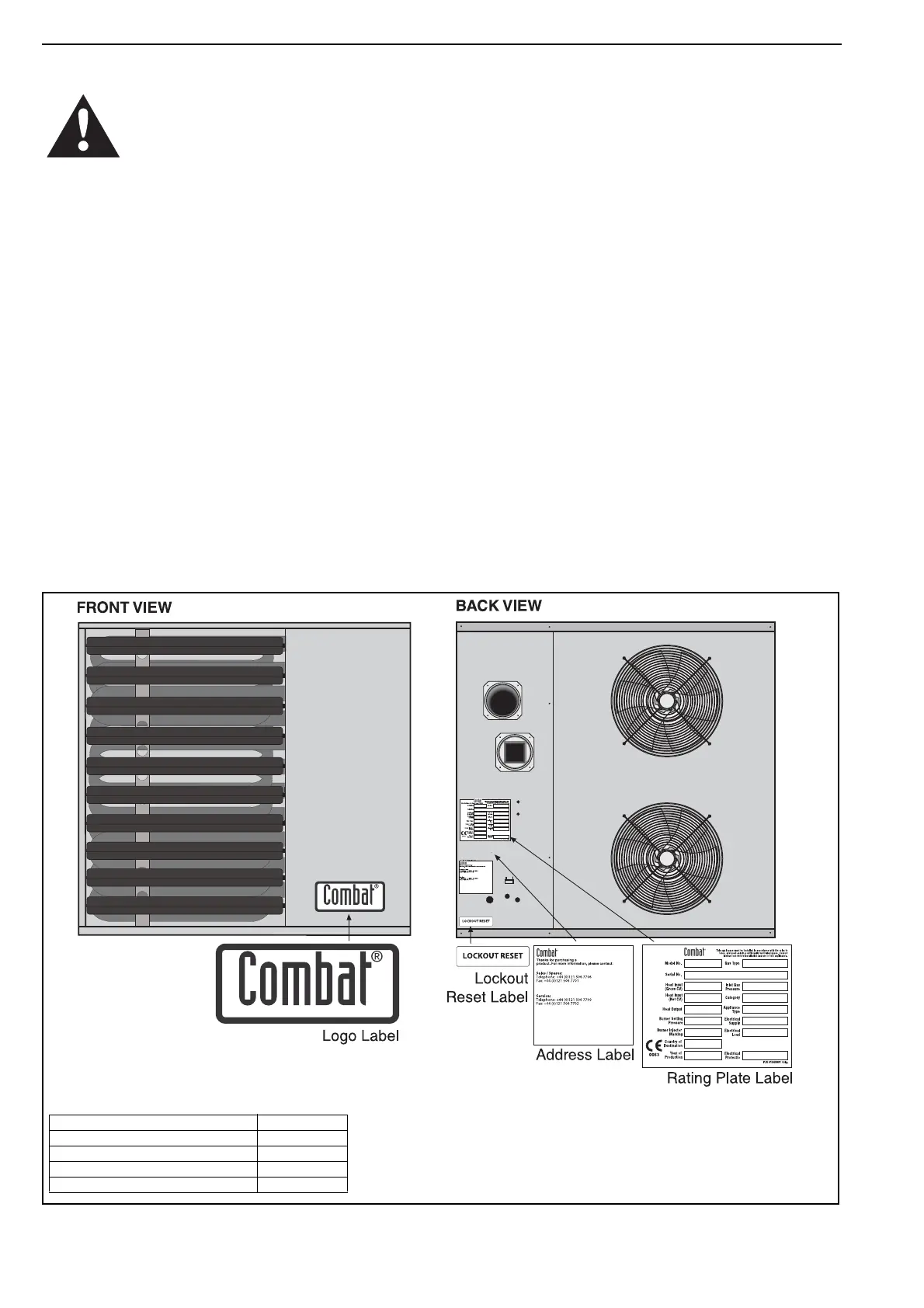 and Service Manual, please contact Combat HVAC