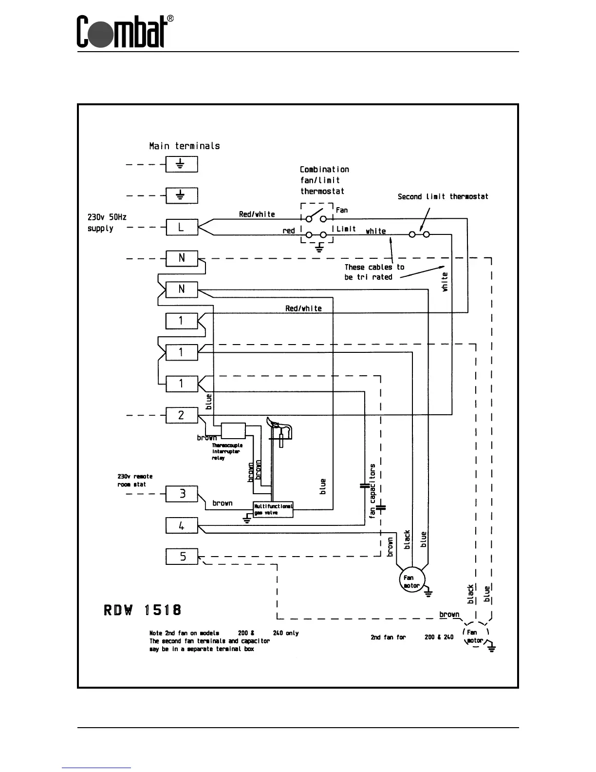 COMBAT CUHA - Fig 5.3 Wiring for CUHB & CUHC models 180 to 300
