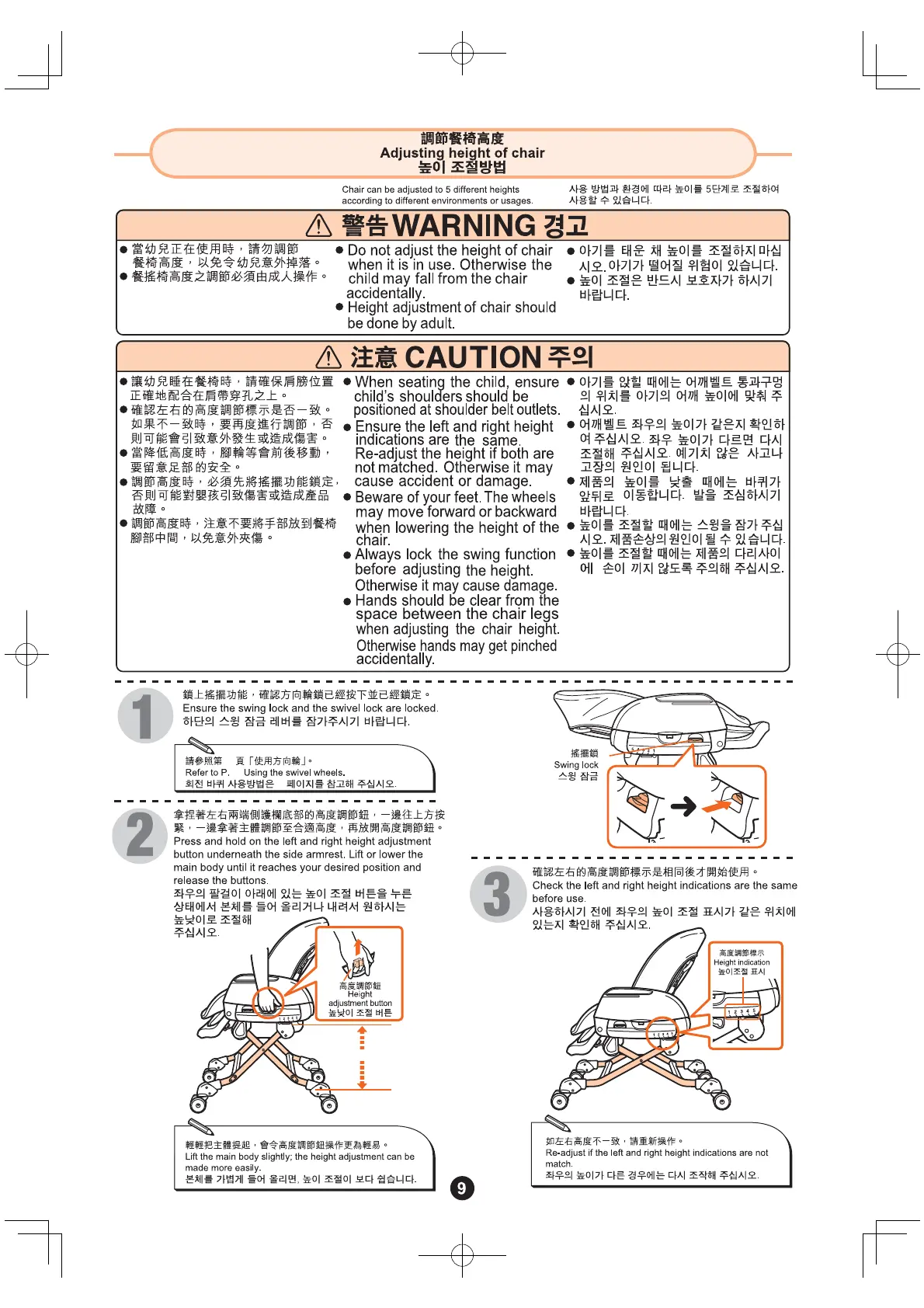 Combi BEDi - Adjusting Chair Height; WARNING; CAUTION; Height Adjustment Procedure