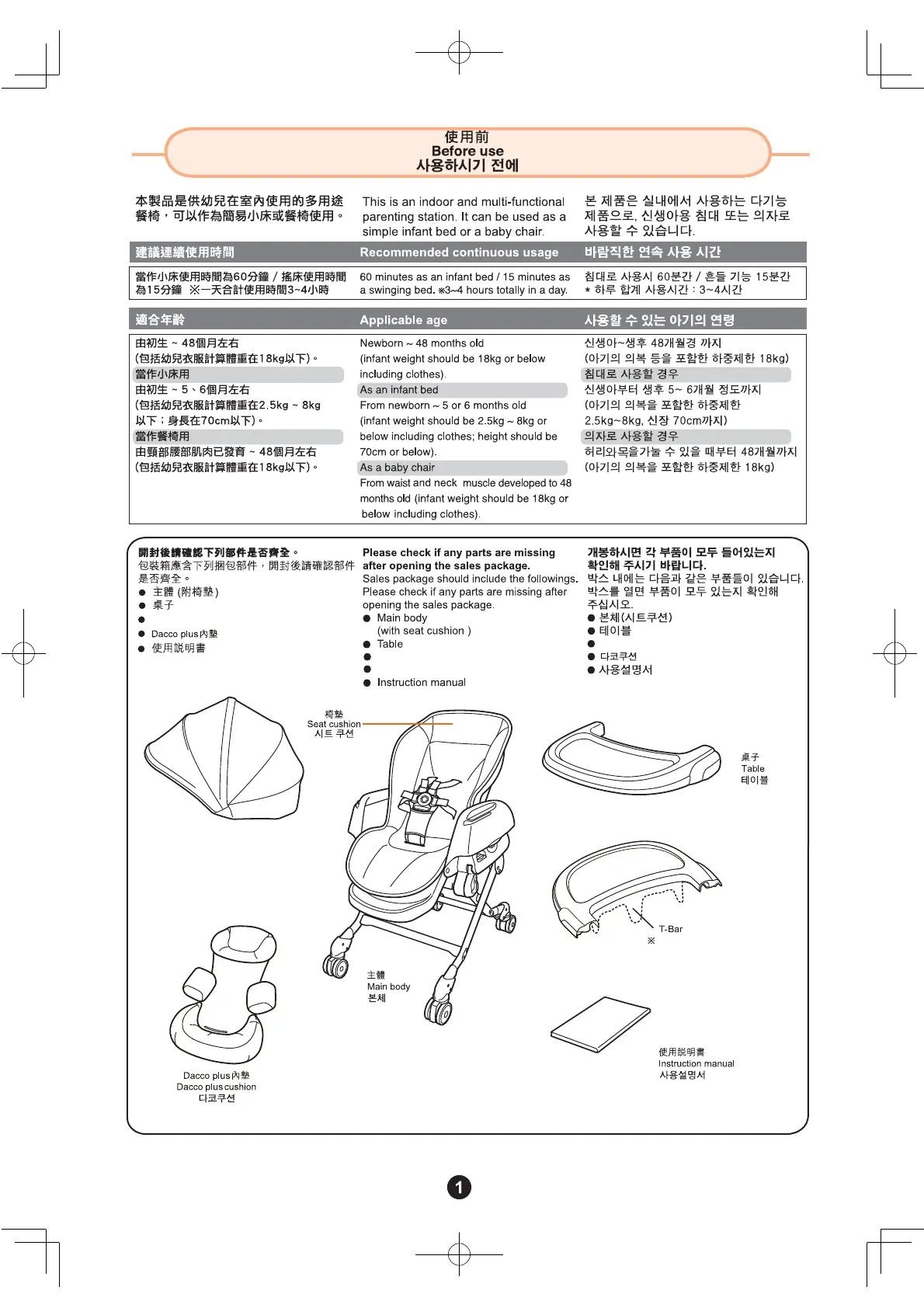 Combi BEDi - Before Use; Recommended Continuous Usage; Applicable Age; Parts Check