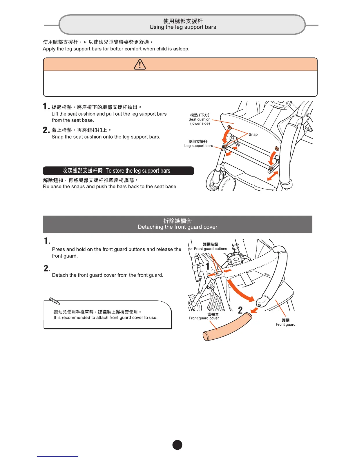 乘載幼兒請確保已用鈕扣把椅墊和腿部支援杆扣上。