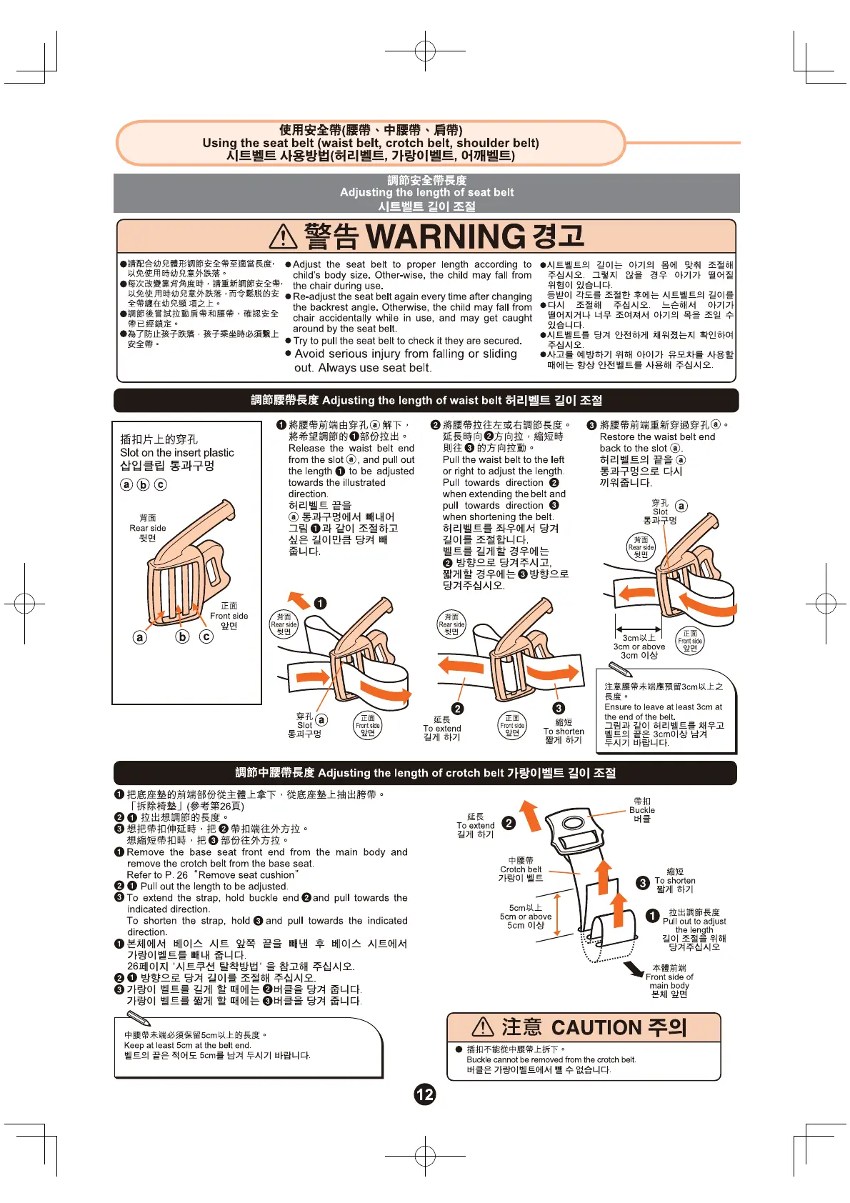 Combi Dreamy - 調節安全帶長度; 安全帶長度調整警告