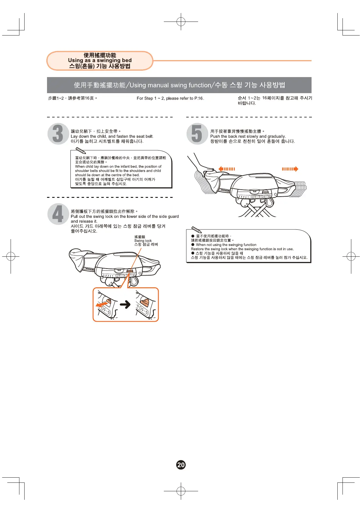 Combi Dreamy - 使用手動搖擺功能 Using manual swing function;수동 스윙 기능 사용방법; 手動搖擺功能步驟