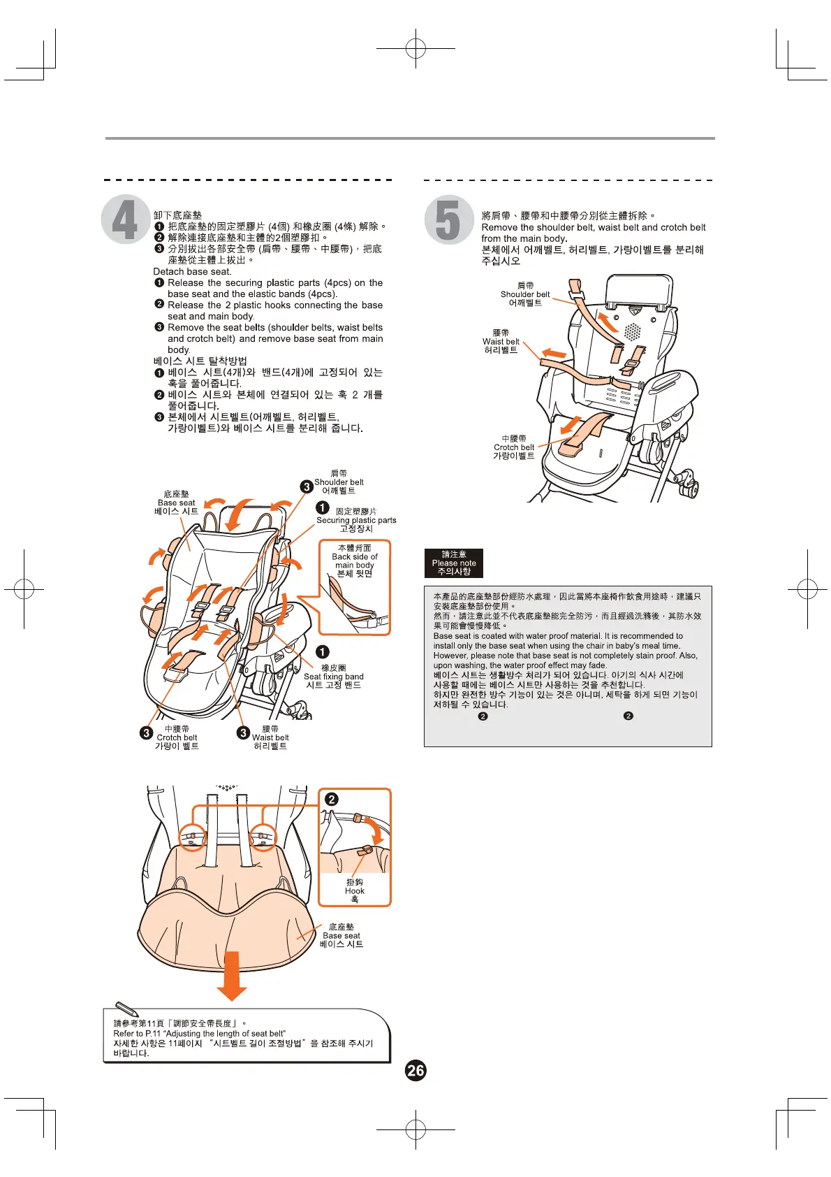 Combi Dreamy - 安裝方法;To attach;장착하기; 安全帶的安裝步驟; 腰帶 肩帶和中腰帶的安裝方法