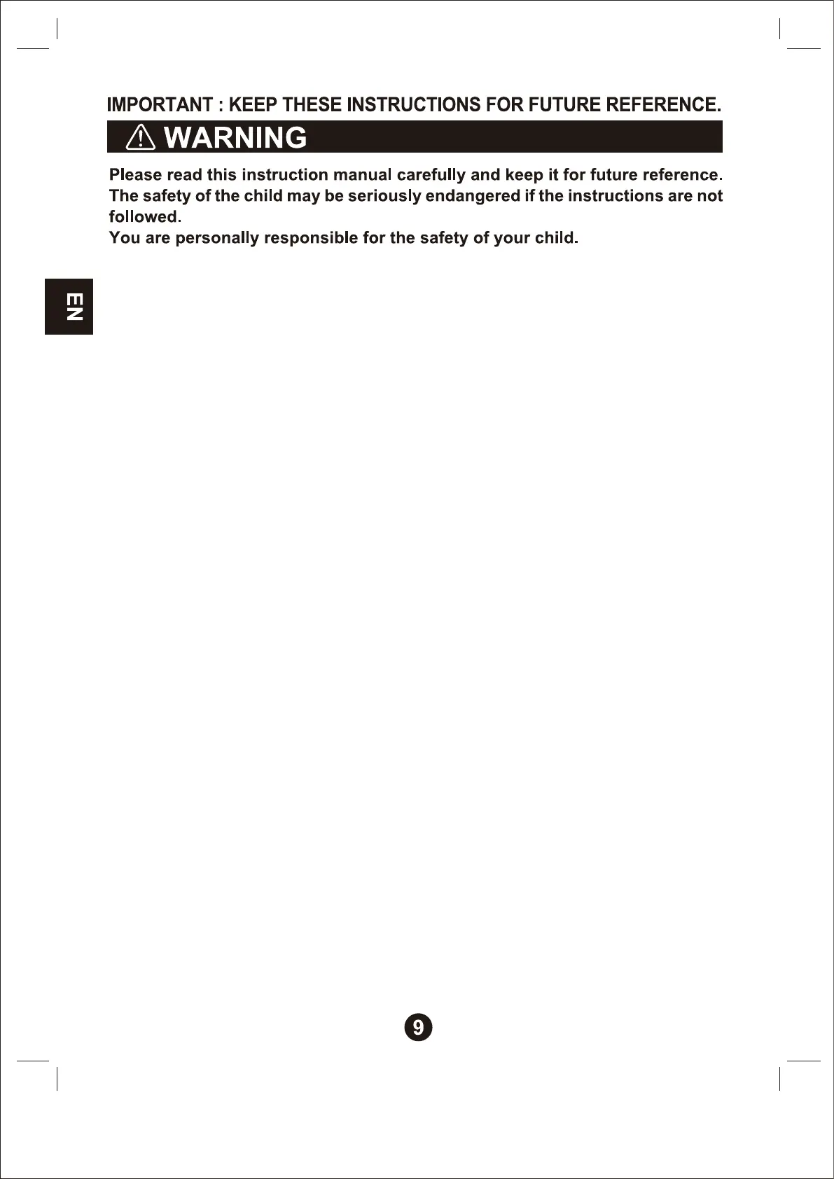 Do not let the child operate the front guard. It may make the child to fall off