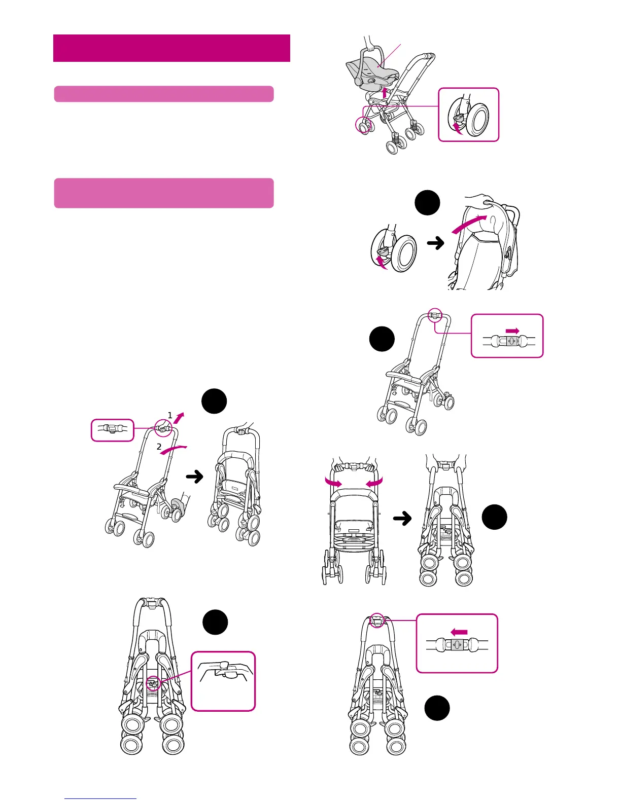 1 Remove infant seat and lock both swivel wheels.