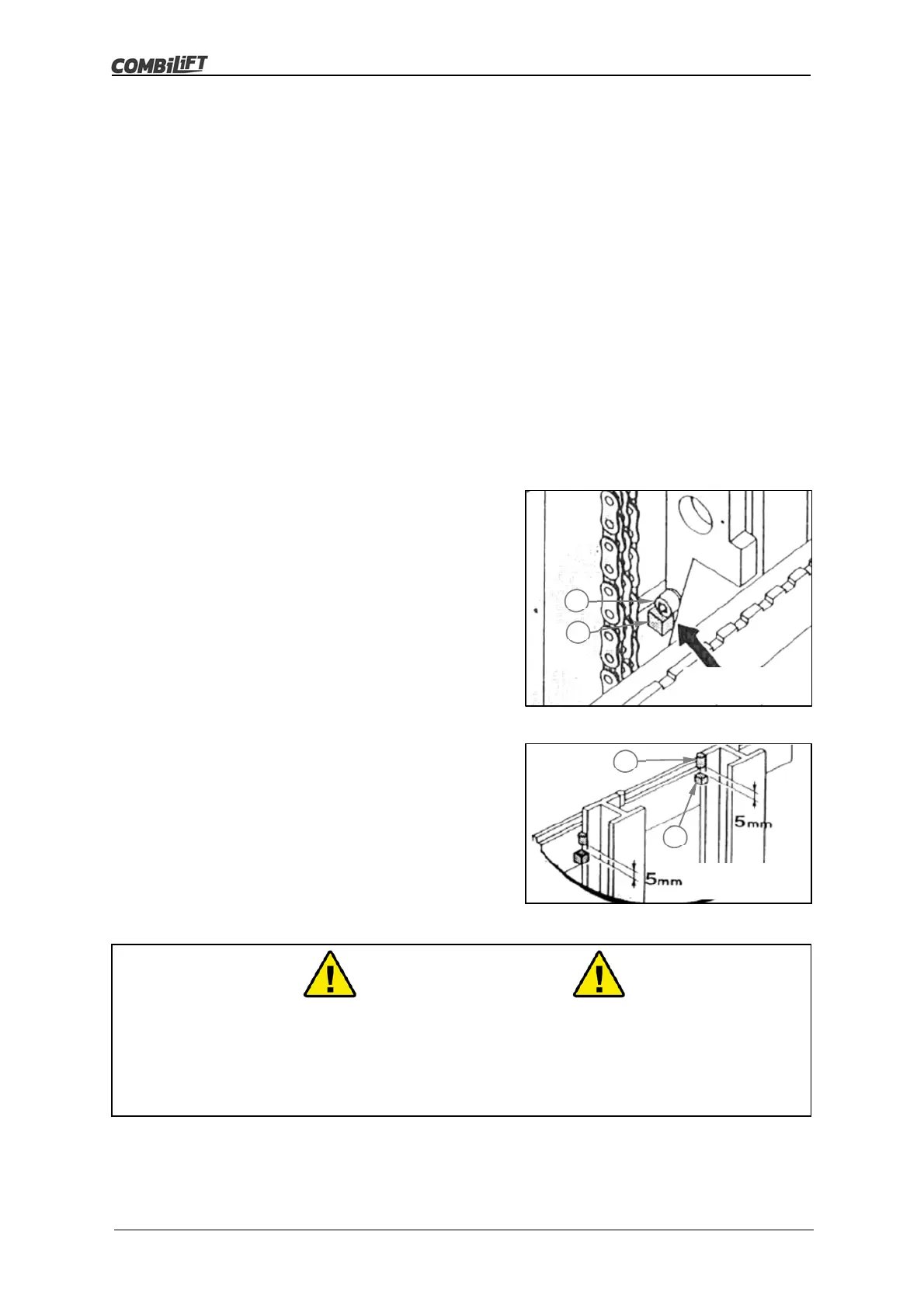 The chains connecting the fork carriage to the mast stages must be adjusted so that