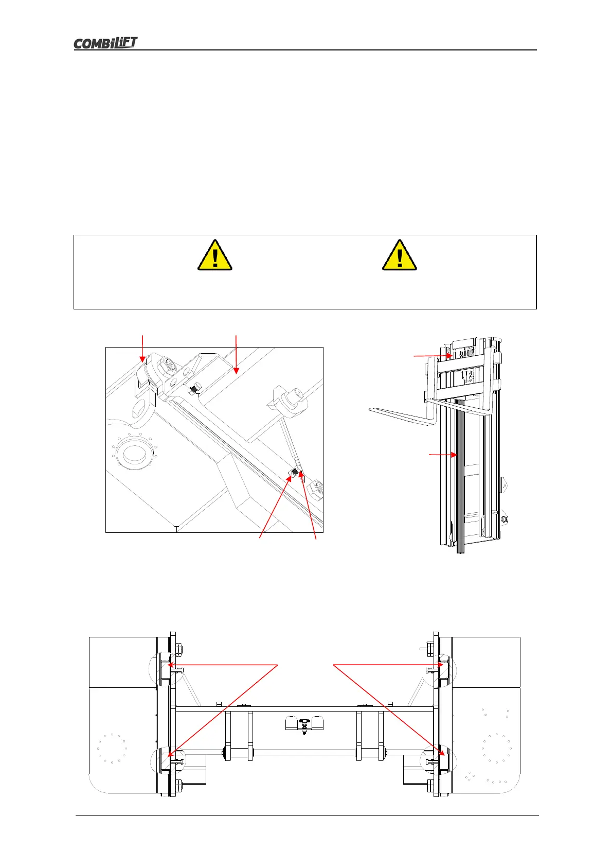 adjustment bolts. Prop up the fork carriage using a suitable support to prevent