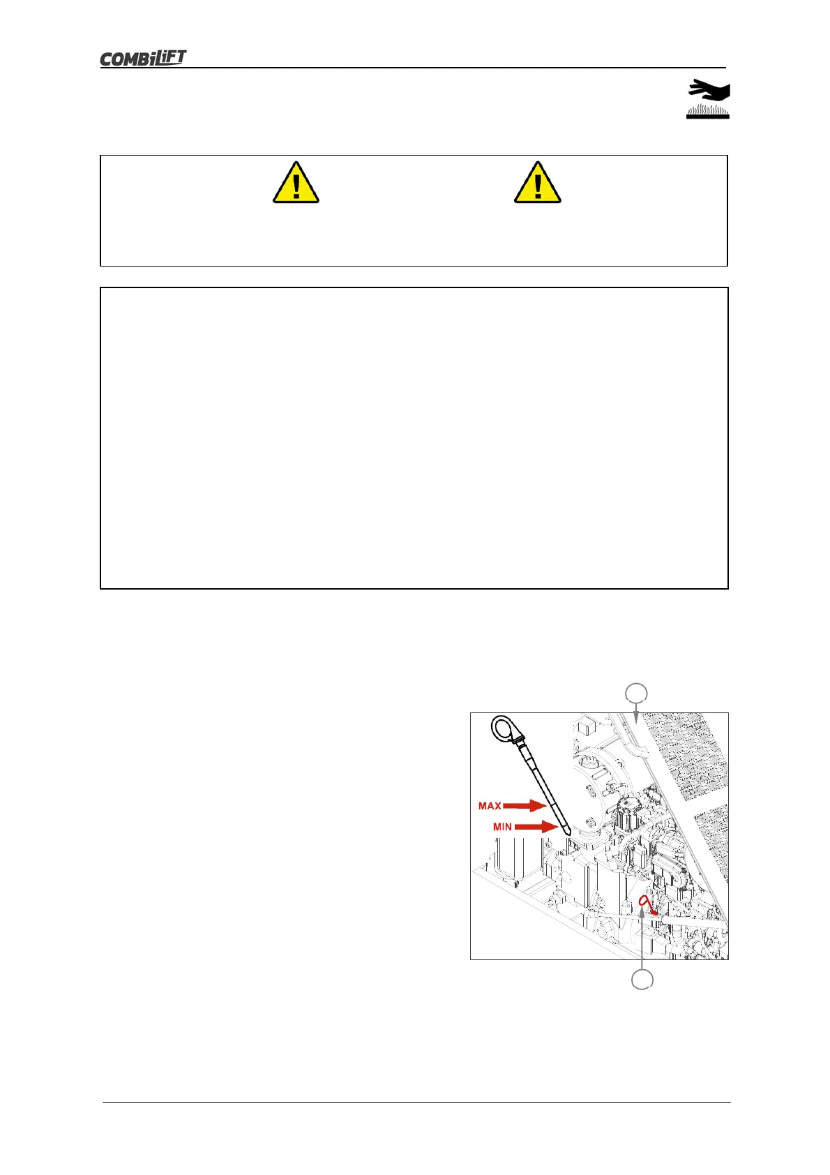 The engine oil level is monitored via the dipstick (A) on the side of the engine.