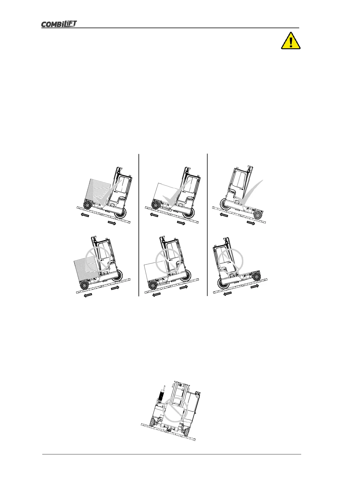 to tip over or skid). If it is not possible to drive up and down the incline with the forks