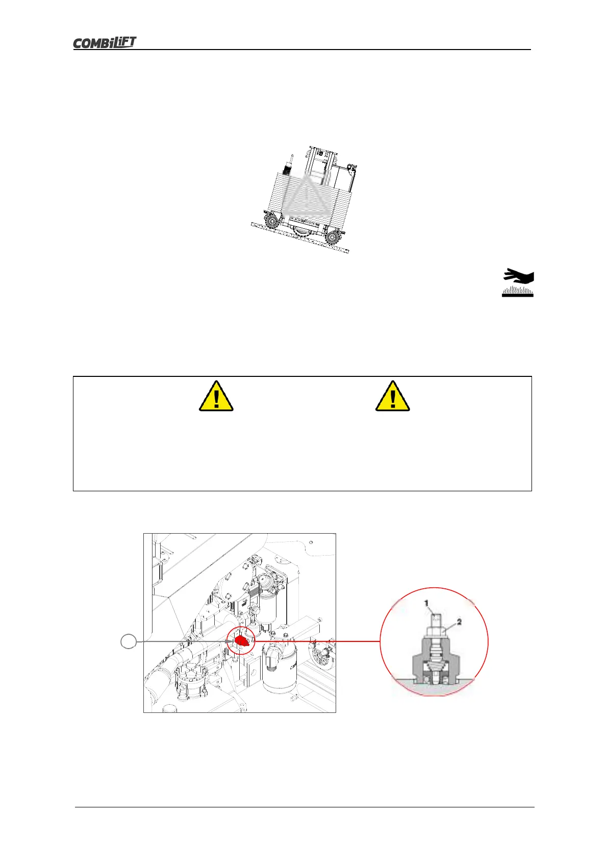 During and after towing the drive pump will be hot. Wear protective clothing.