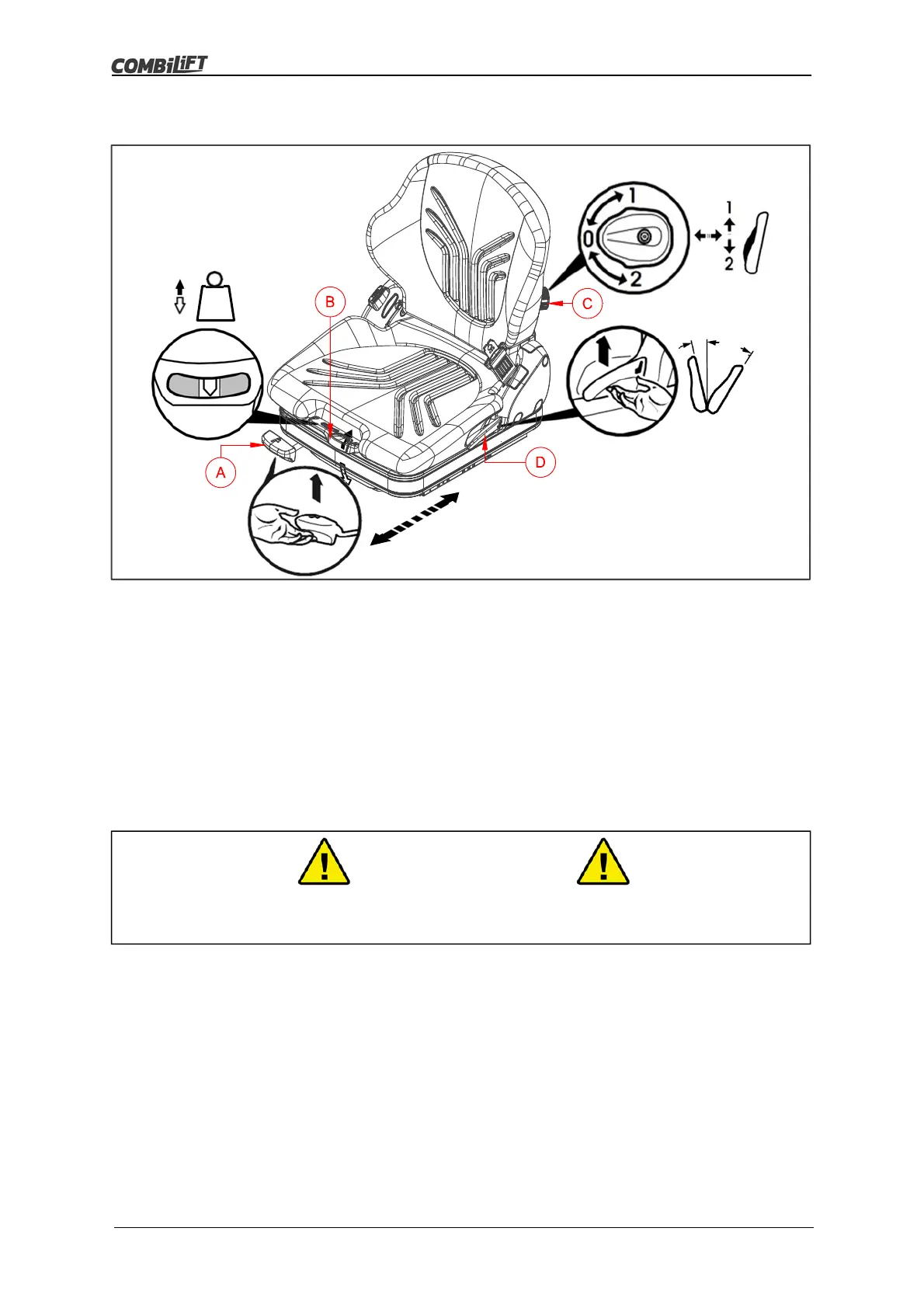To slide the seat forward or back lift the seat slide lever (A) to release the catch