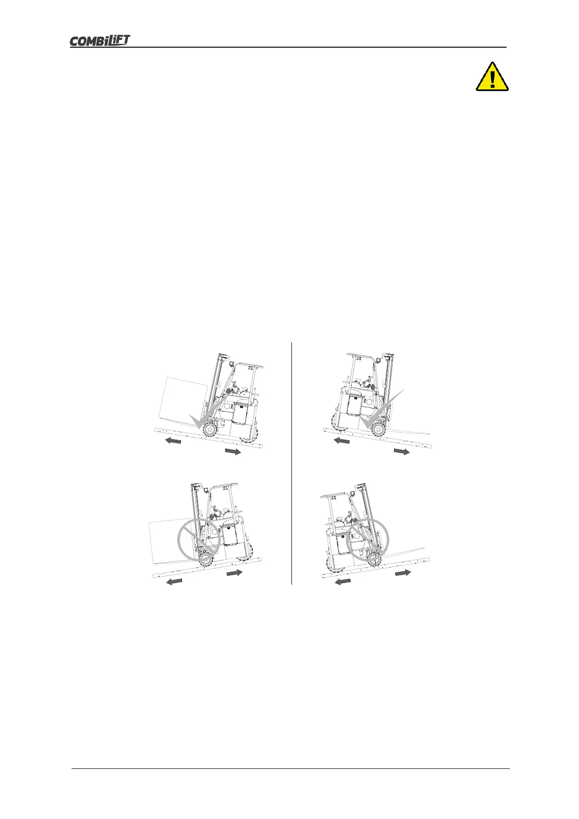 to tip over or skid). If it is not possible to drive up and down the incline with the forks