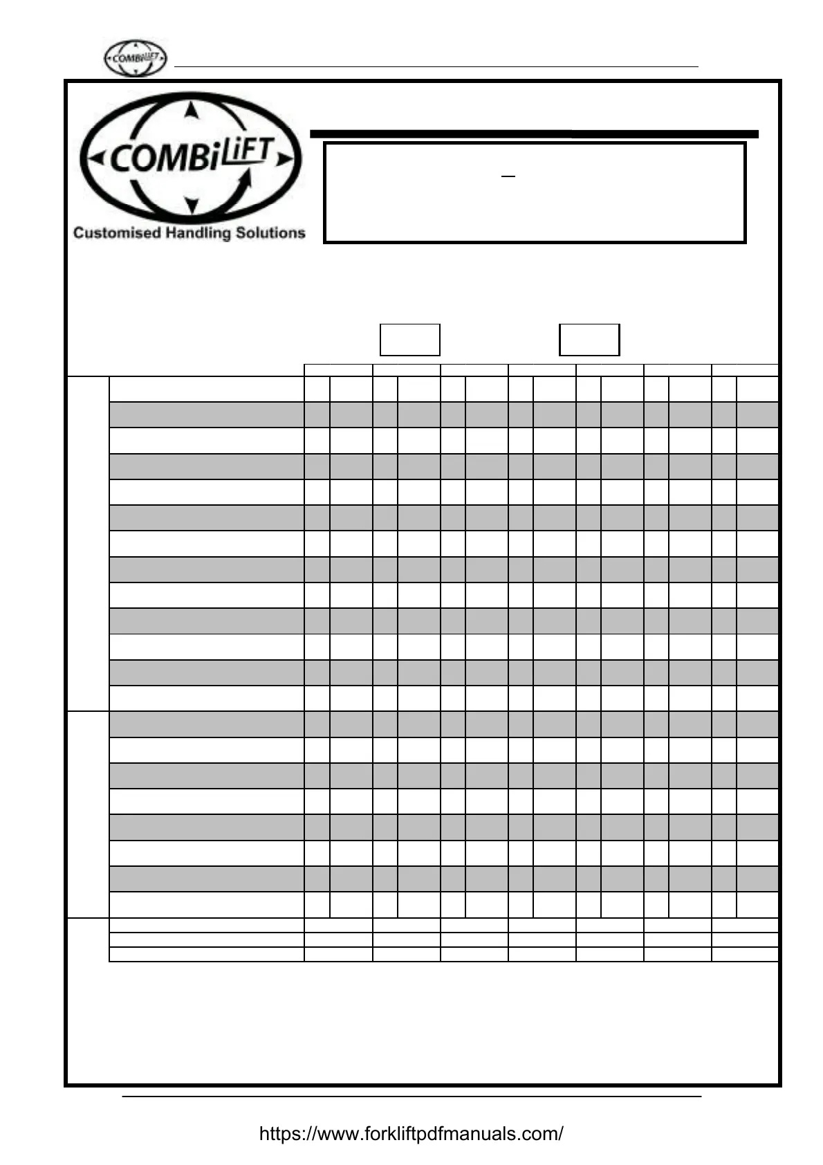 Inspect the Combilift before each shift. Should the Combilift be found to require servicing or if during the