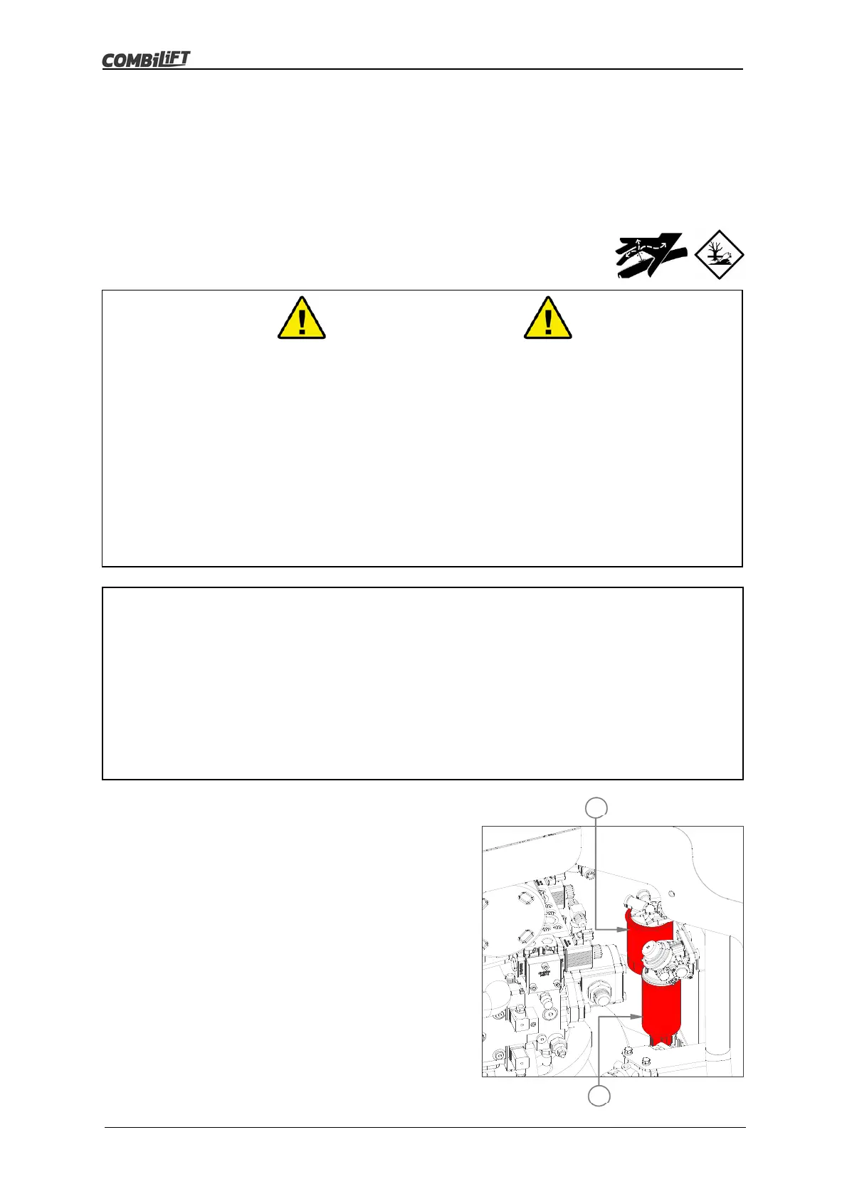 22. Dispose of waste oil and used filter elements in compliance with local