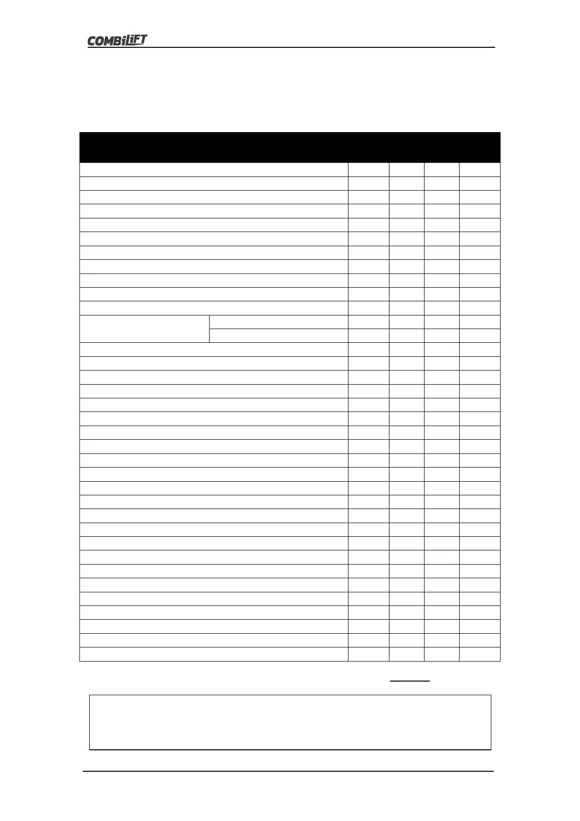 In order to keep the Combilift in optimum working condition it is necessary to