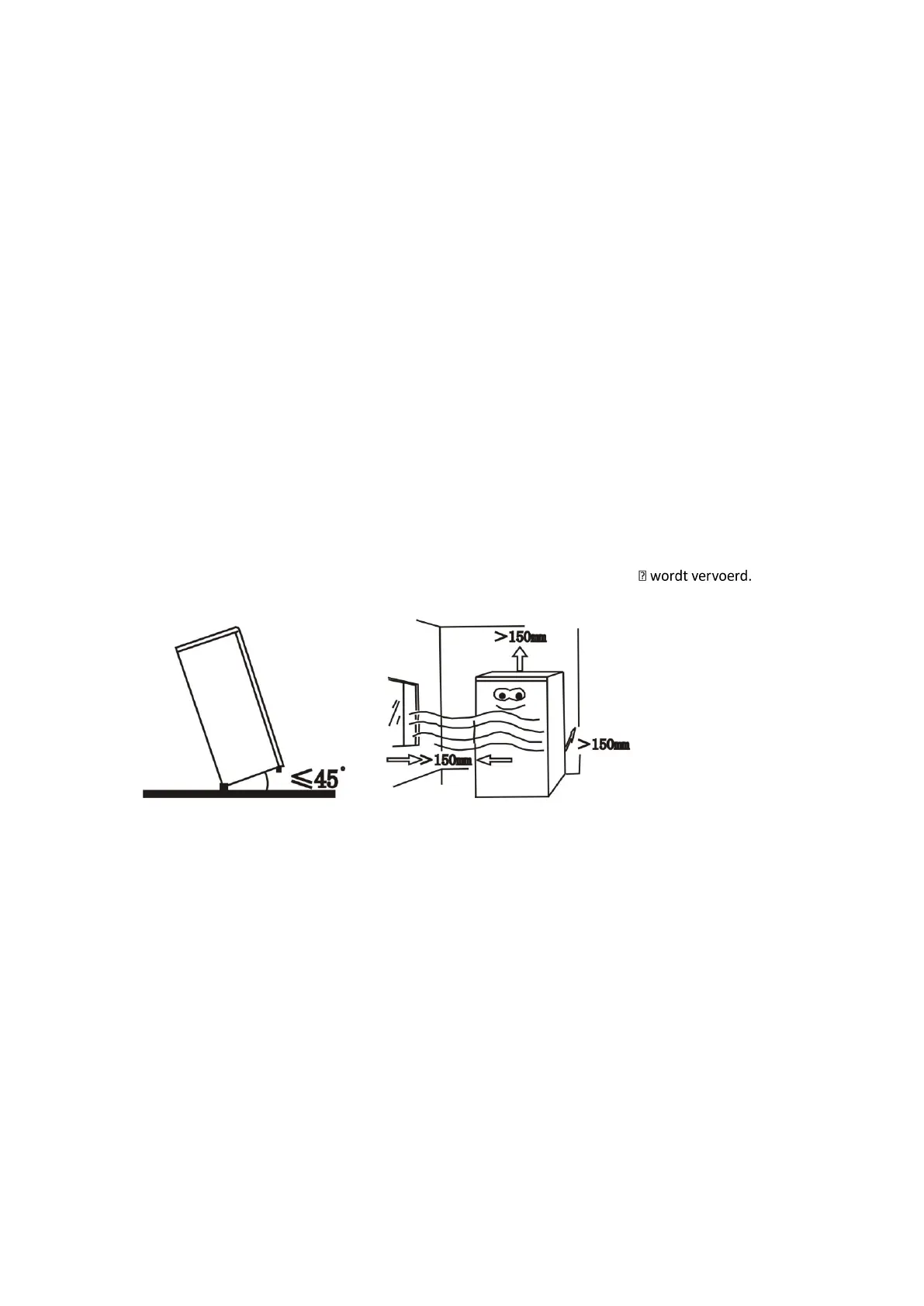 afstand van warmtebronnen en corrosieve gassen. Rond de ijsblokjesmachine moet tenminste 150