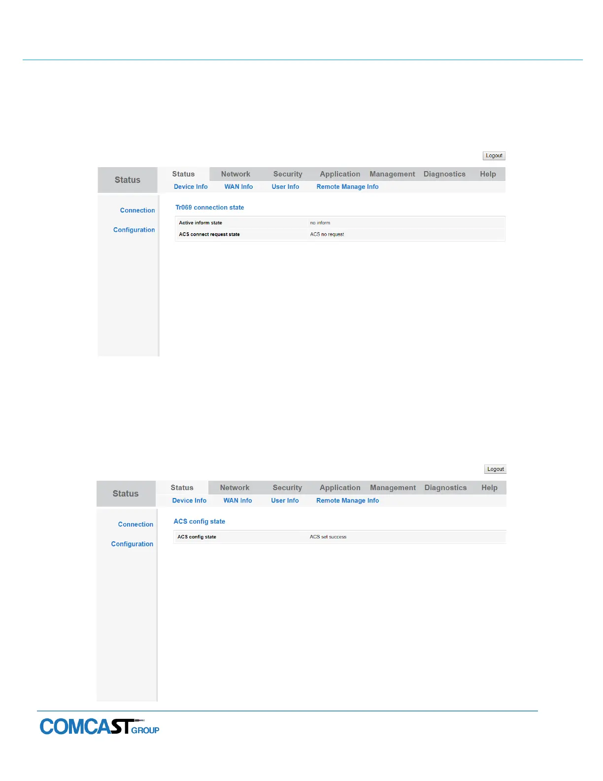 Comcast 781W - Remote Management Status