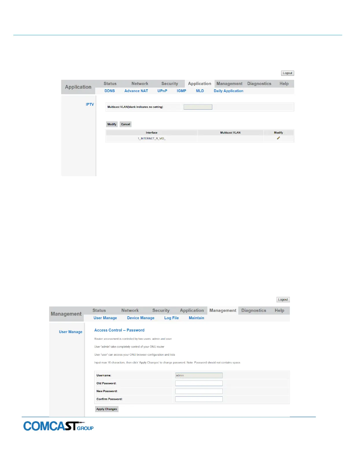 Comcast 781W - Iptv; Management; User Management