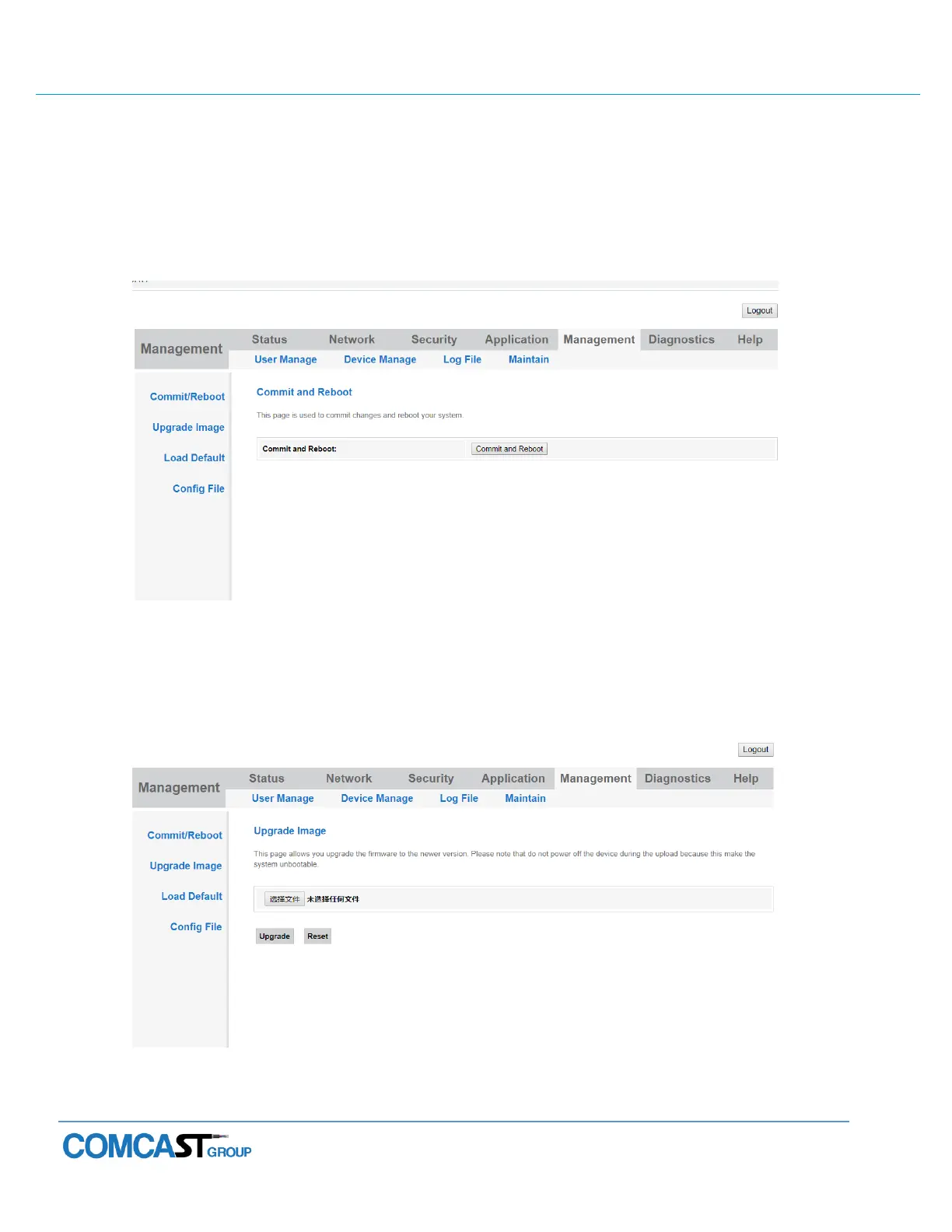 This page allows the user to reboot the device or restore factory default. The process of reboot