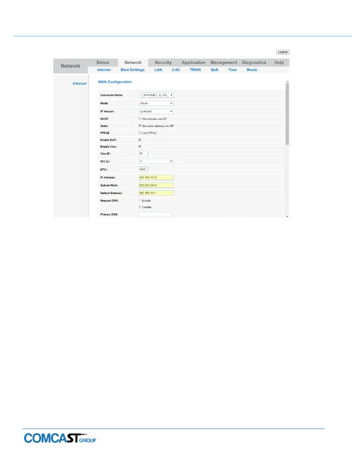 Figure 4-4: Route Mode Static IP