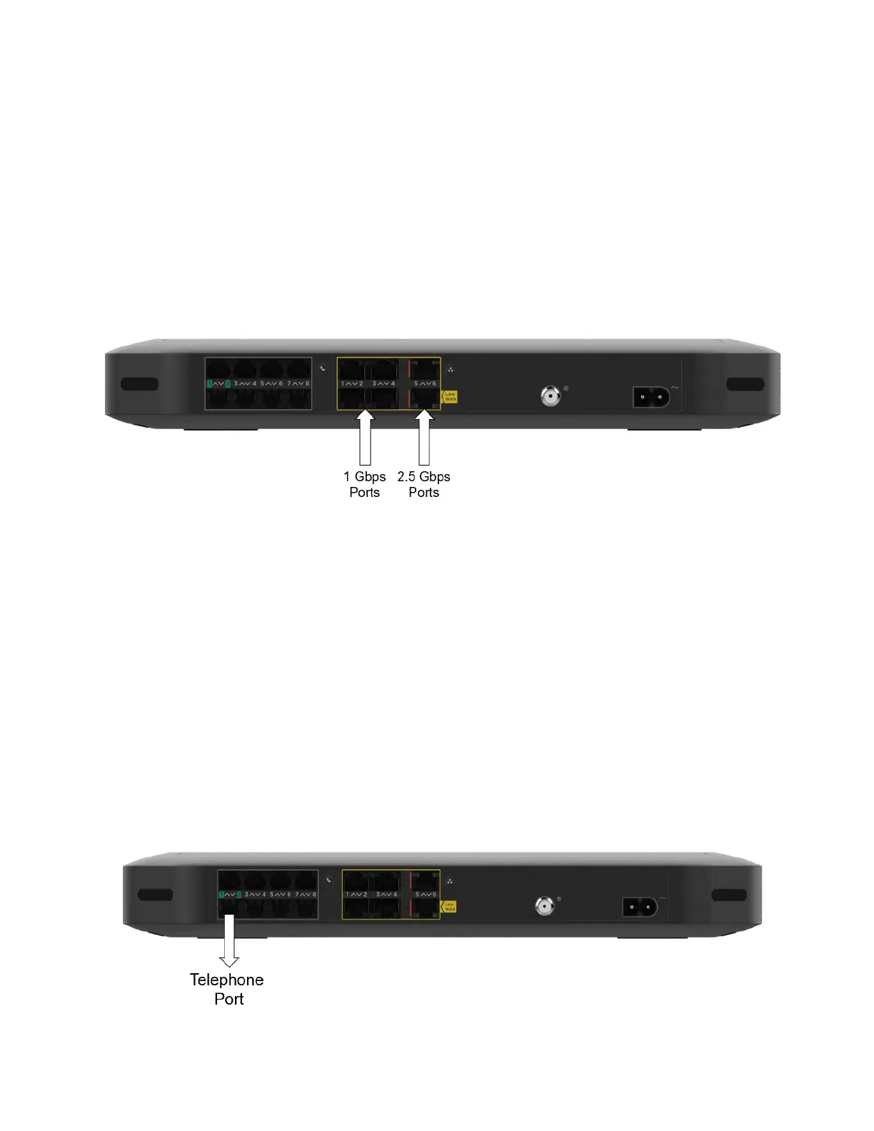 1 Gbps (Gigabit per second). Ethernet ports 5 and 6 are 2.5 Gigabit Ethernet ports and have a