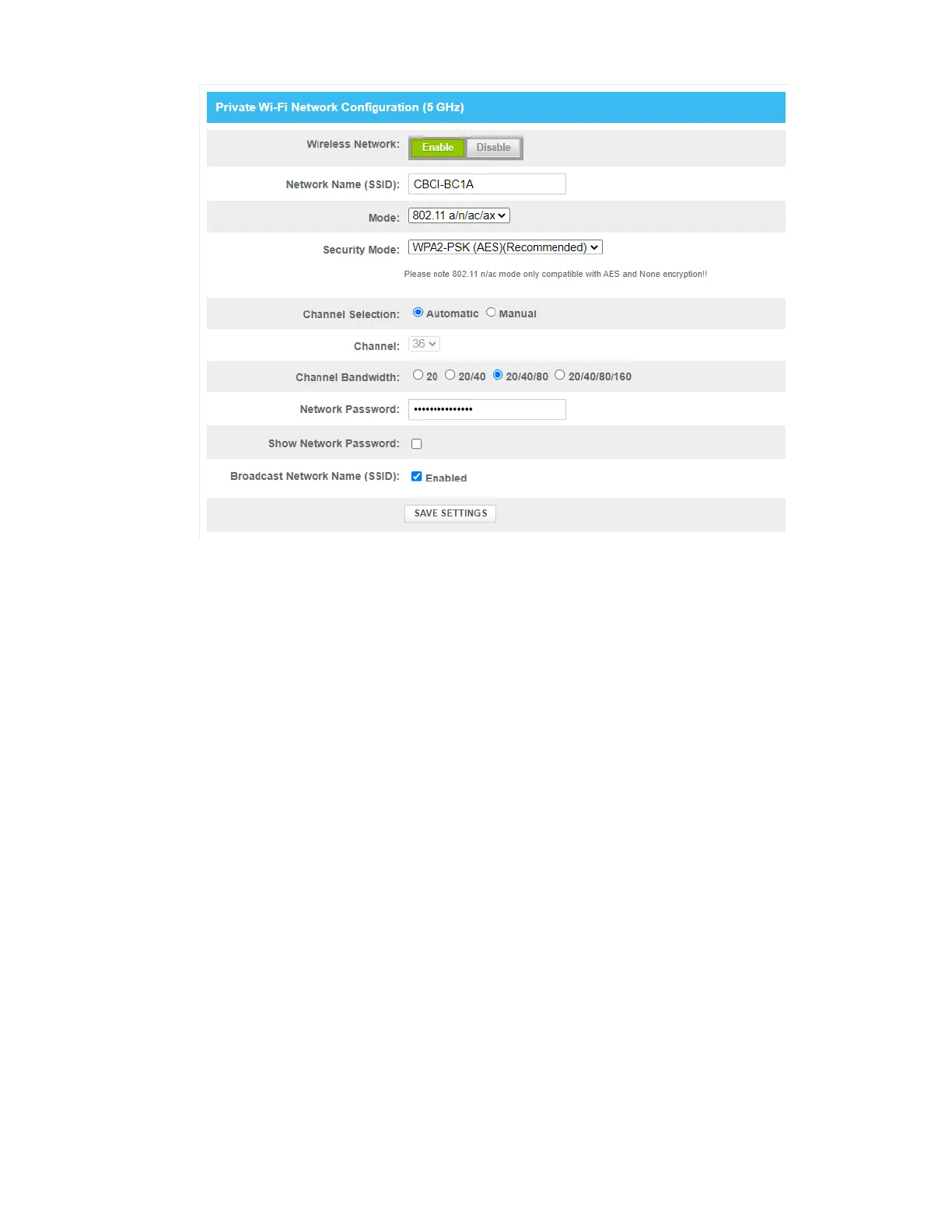 Security Mode: The encryption type used to secure your wireless communication. We recommend using the default