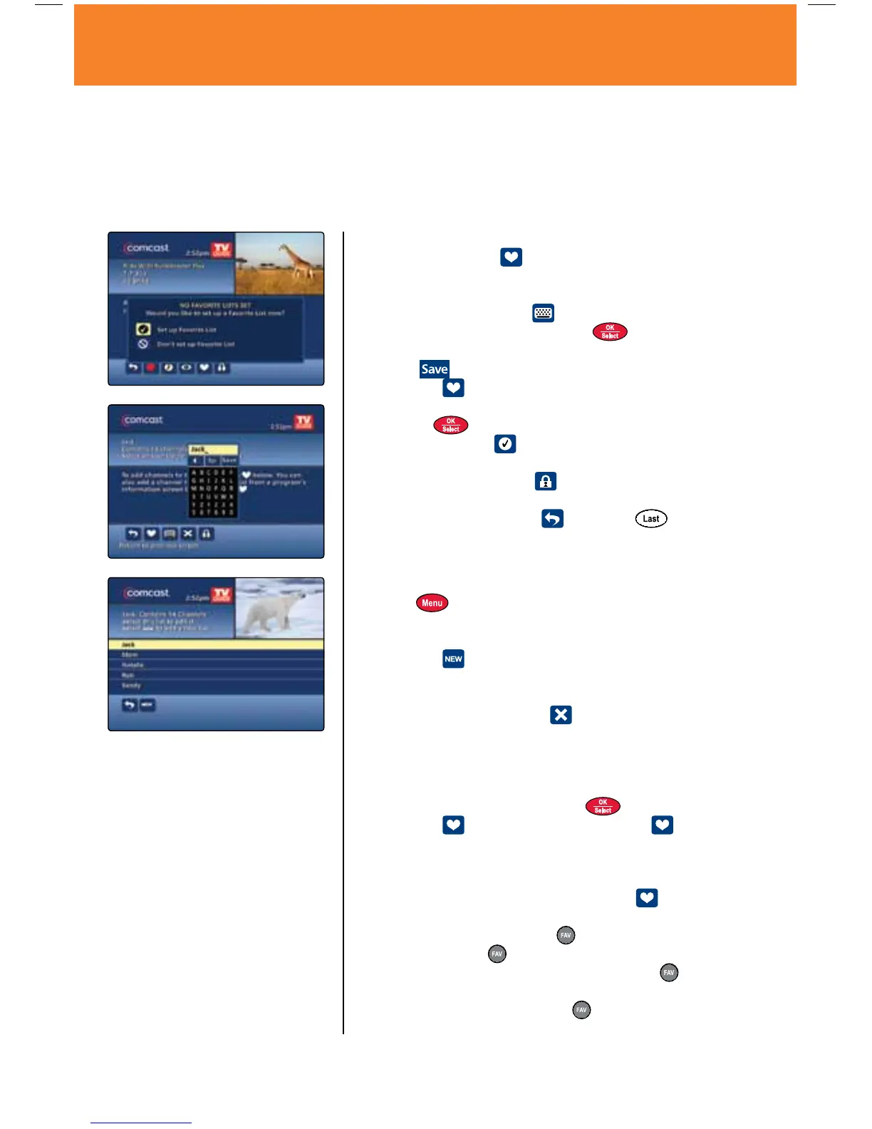 Favorites without having to wade through all the other channels. You can create up to five Favorite Lists,