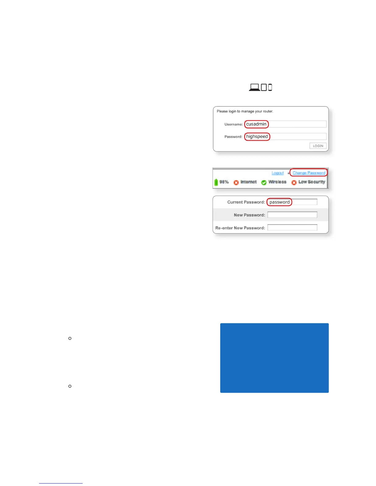 and network, we recommend changing the default password to a password of