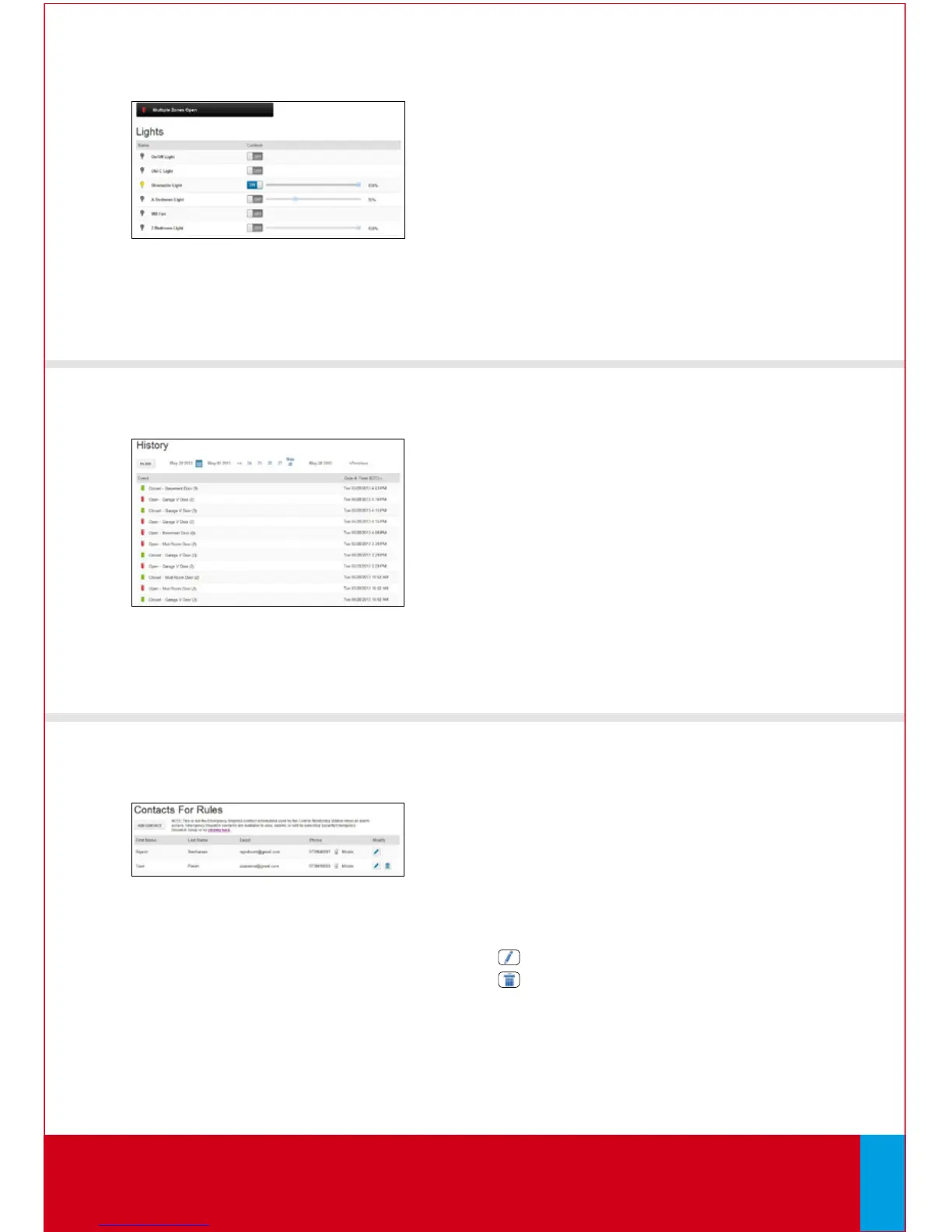 • System arming or disarming events