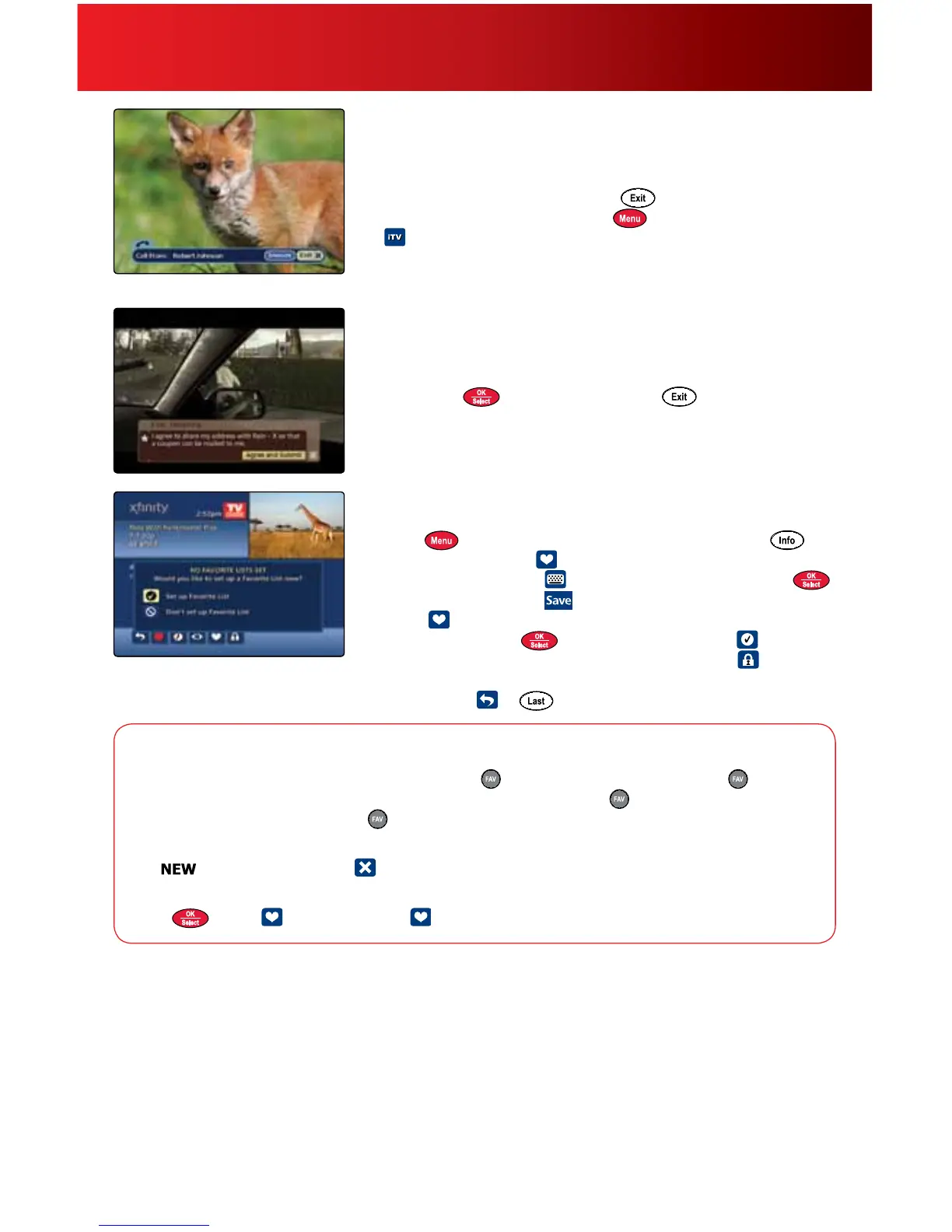 Access Favorite Lists—WhilewatchingTV,press onyourremote.Continuetopress toscroll