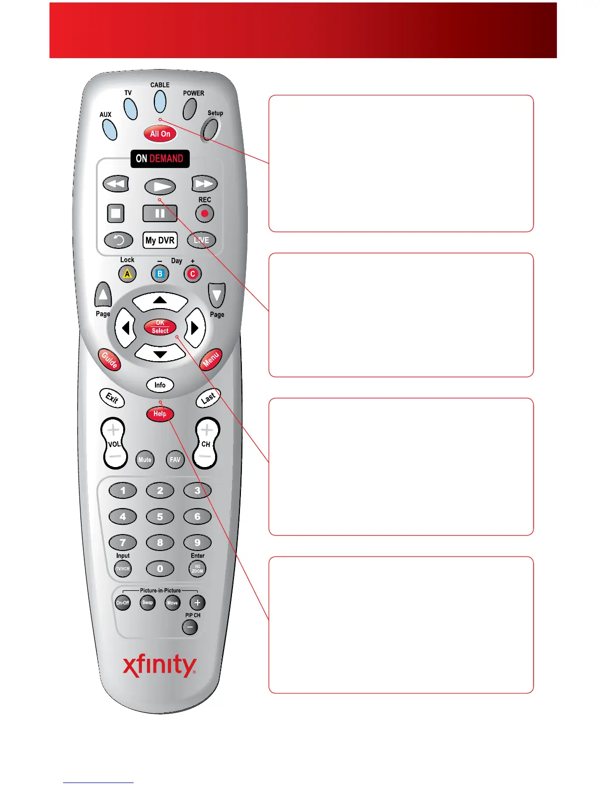 Your remote may vary slightly from the one pictured here, but the basic functions should remain the same. Some features require your remote to