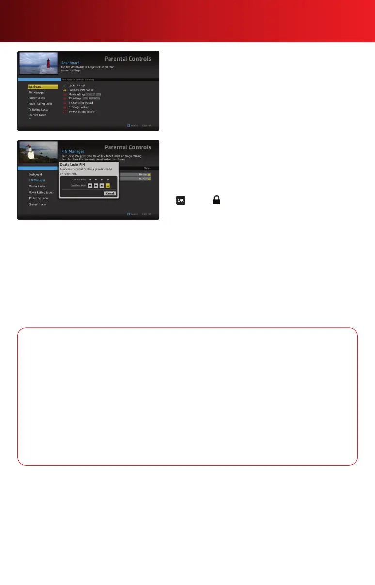 On Demand programs and Pay-Per-View Events. The Locks PIN allows you to lock programming.