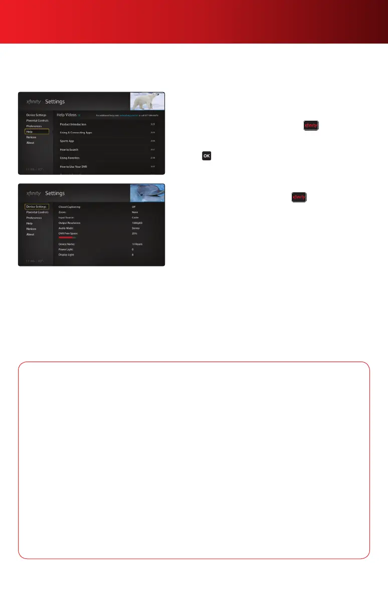 remote, go to Settings, then Help.